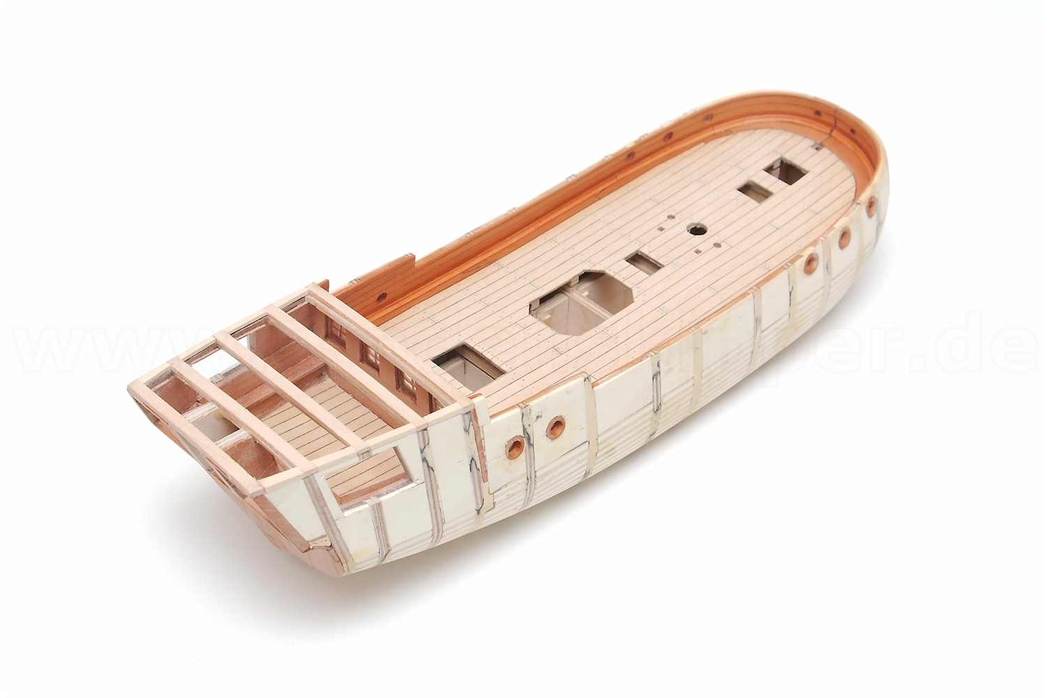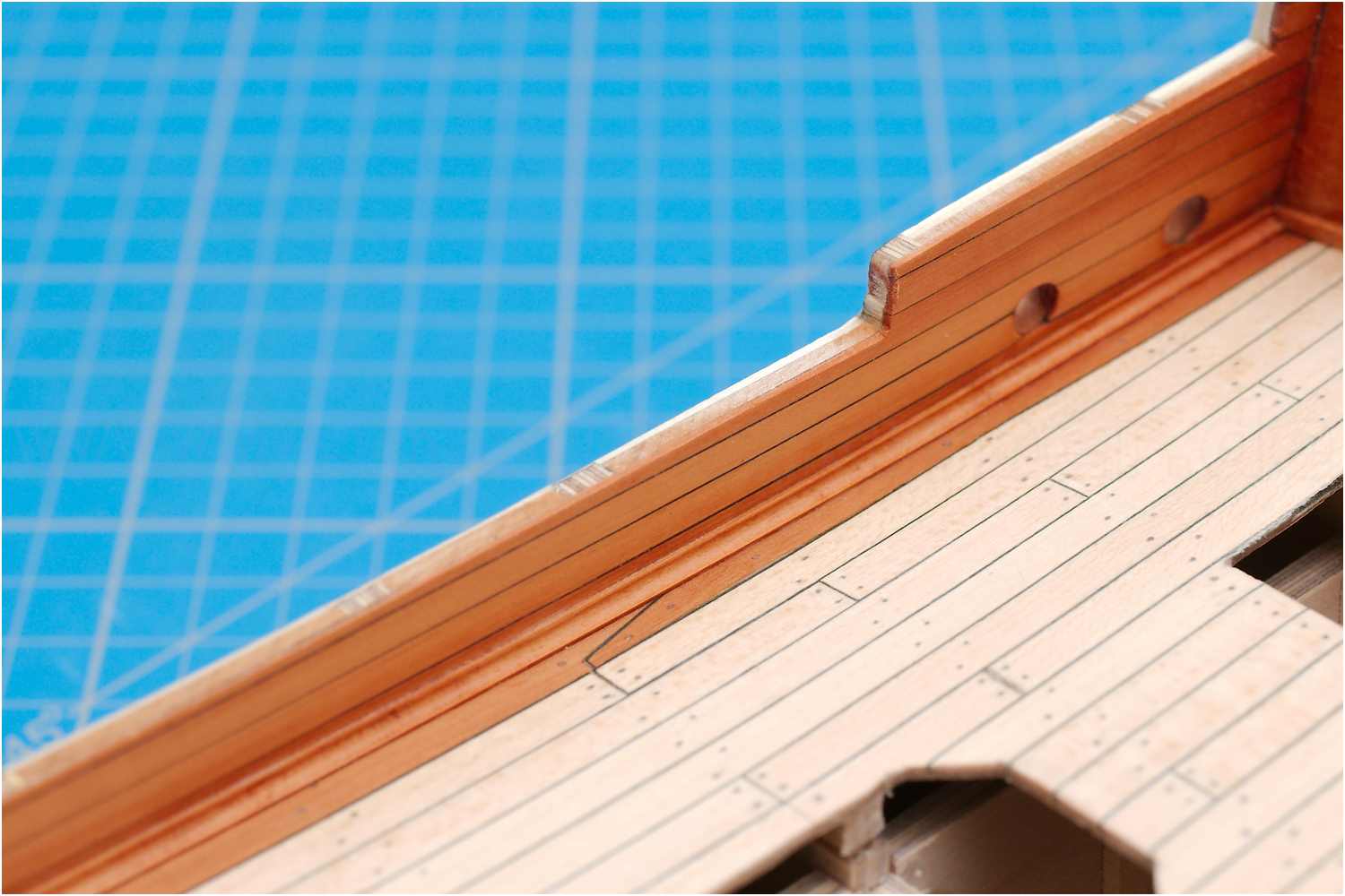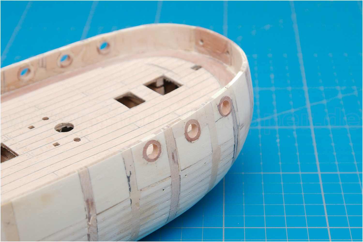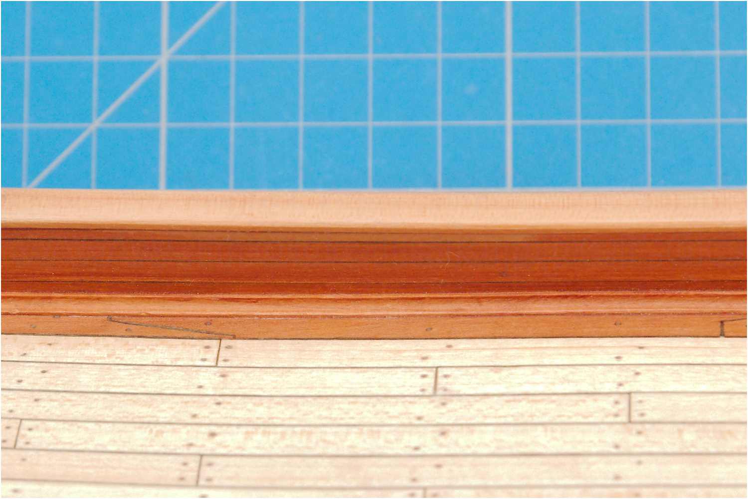 Der Stoß der Leisten am Schott, der "kalfaterte" Plankengang und der Schandeckel sind gut gelungen.