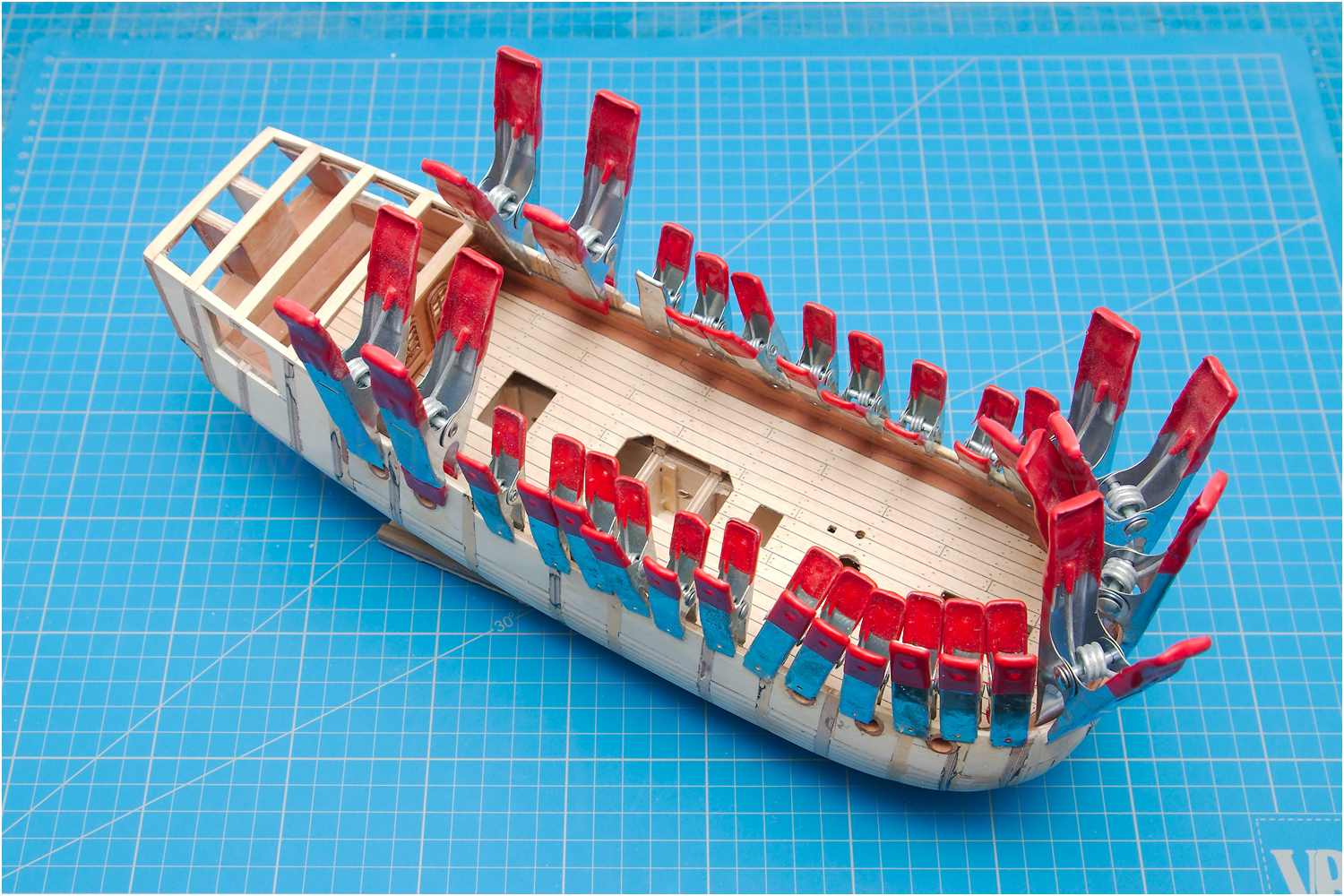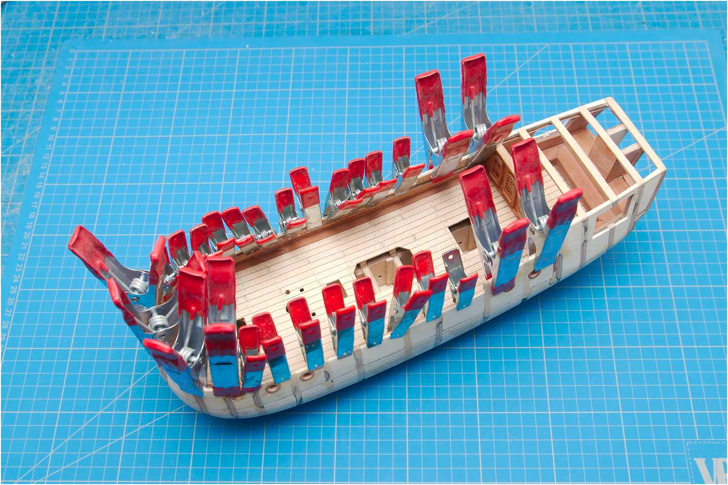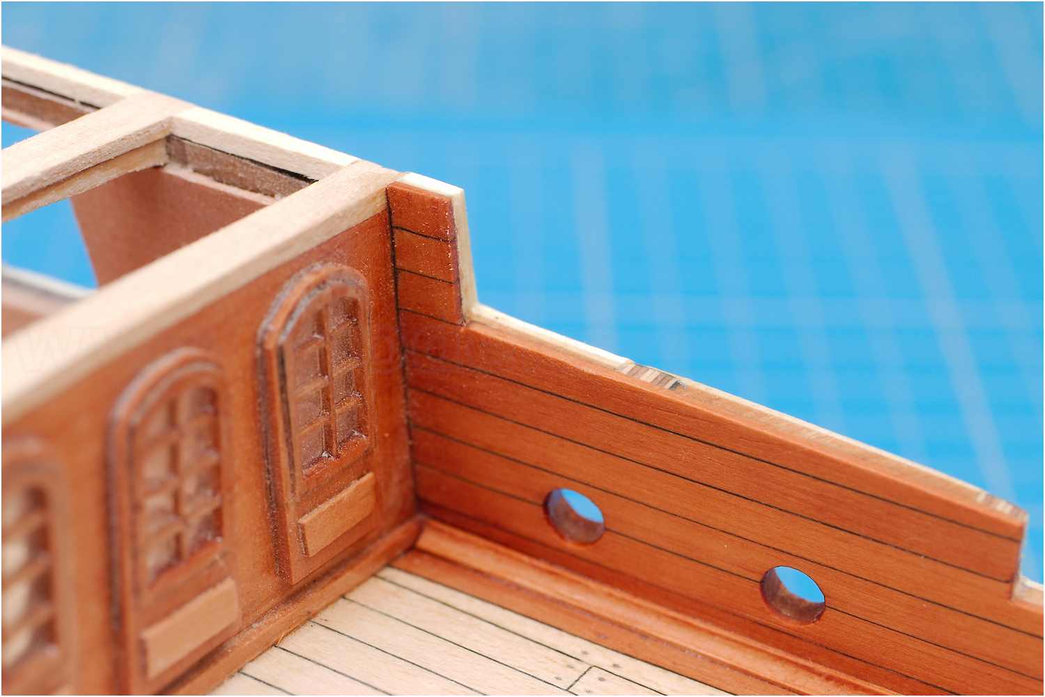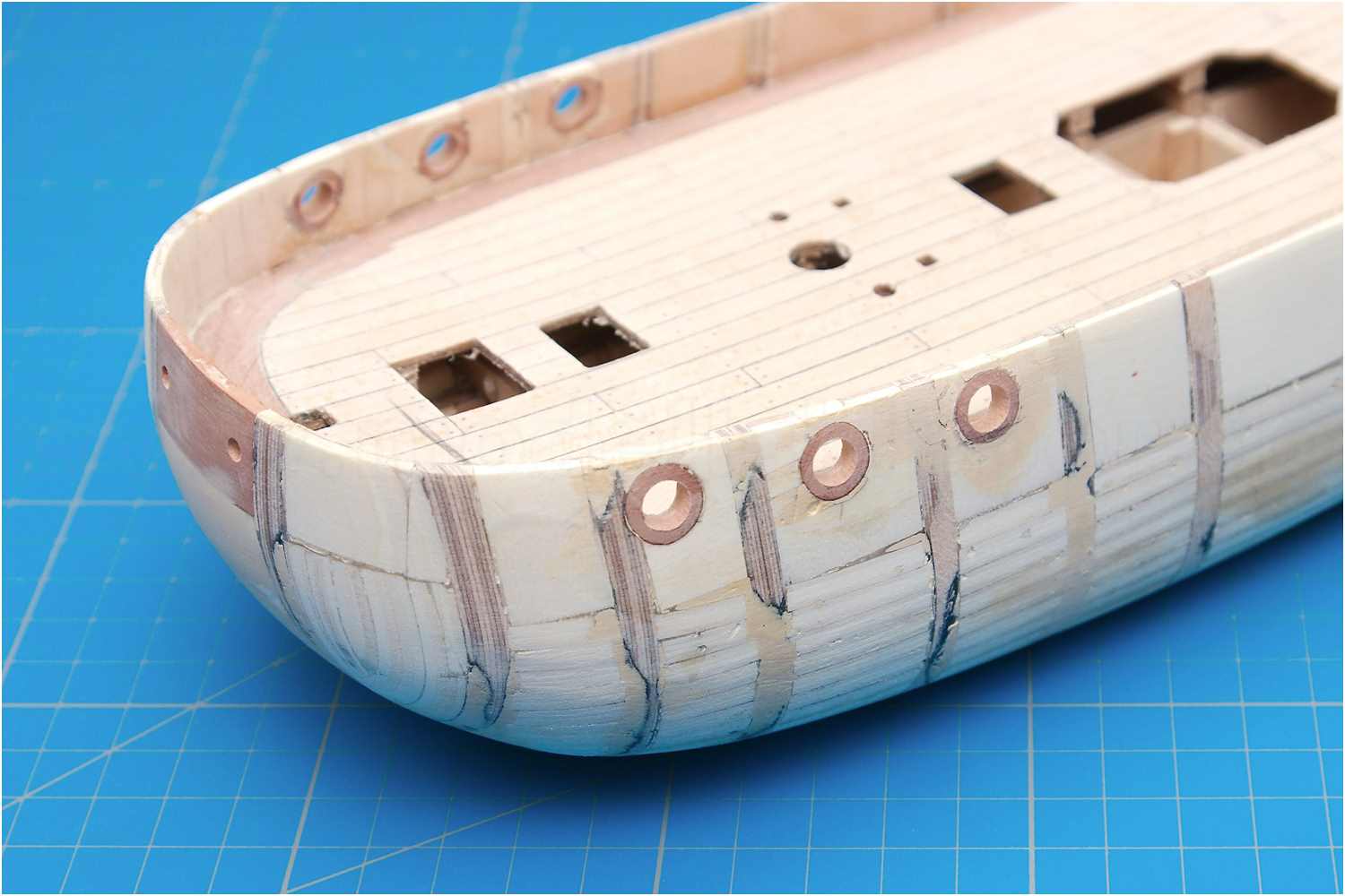 Der Stoß der Leisten am Schott, der "kalfaterte" Plankengang und der Schandeckel sind gut gelungen.