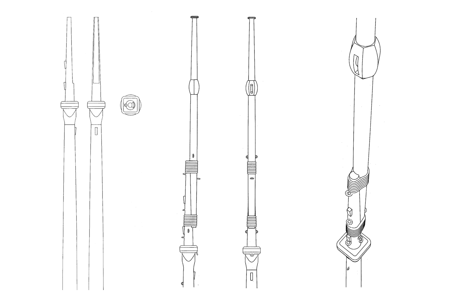 Mir ist nicht ganz klar, warum sich die Art des Masts grundlegend von der sonst üblichen Bauweise mit Saling und Oberwanten unterscheidet. Bei NJ konnte ich folgende Informationen finden: