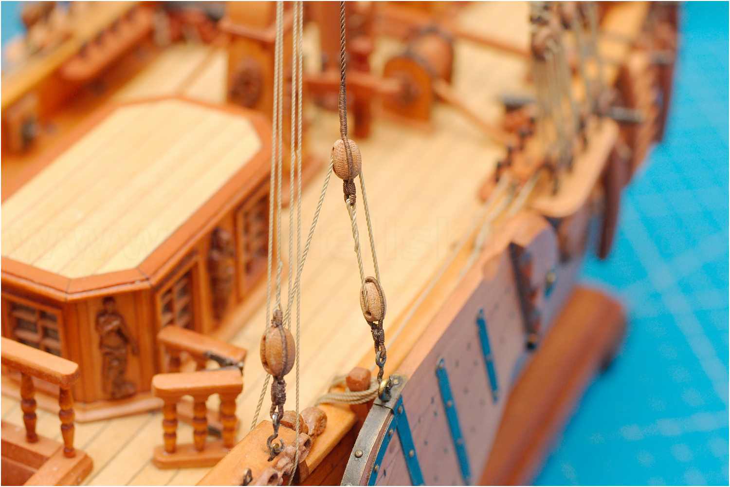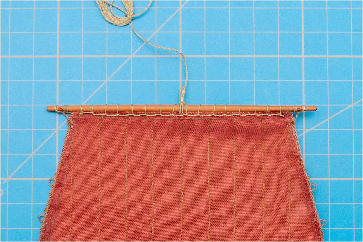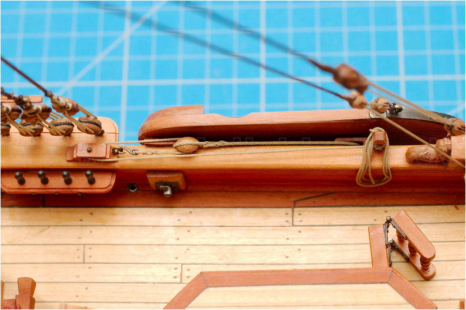 Alle Taue des stehenden und laufenden Gutes sowie Bändselgut werden selber hergestellt, dafür nutze ich Garne der Fa. Gütermann.