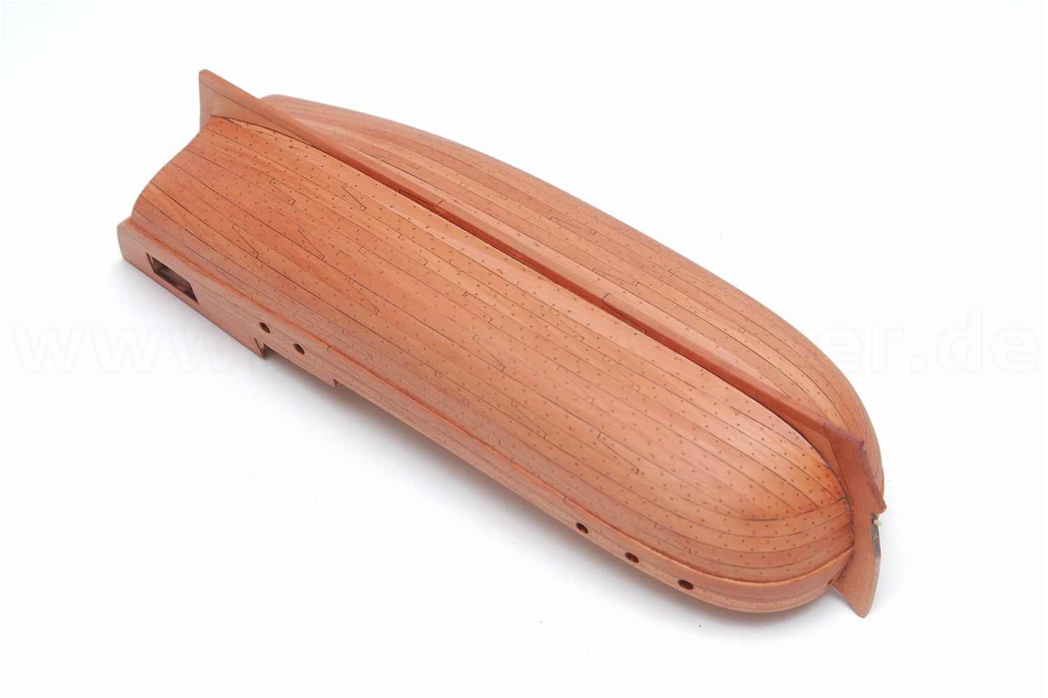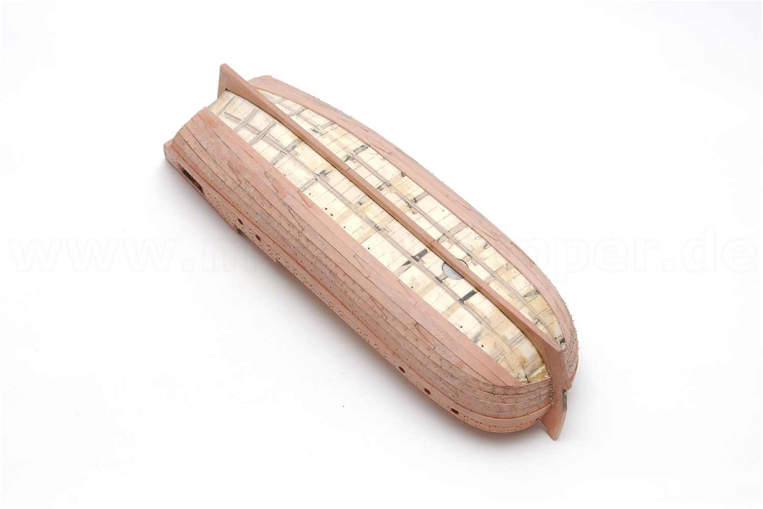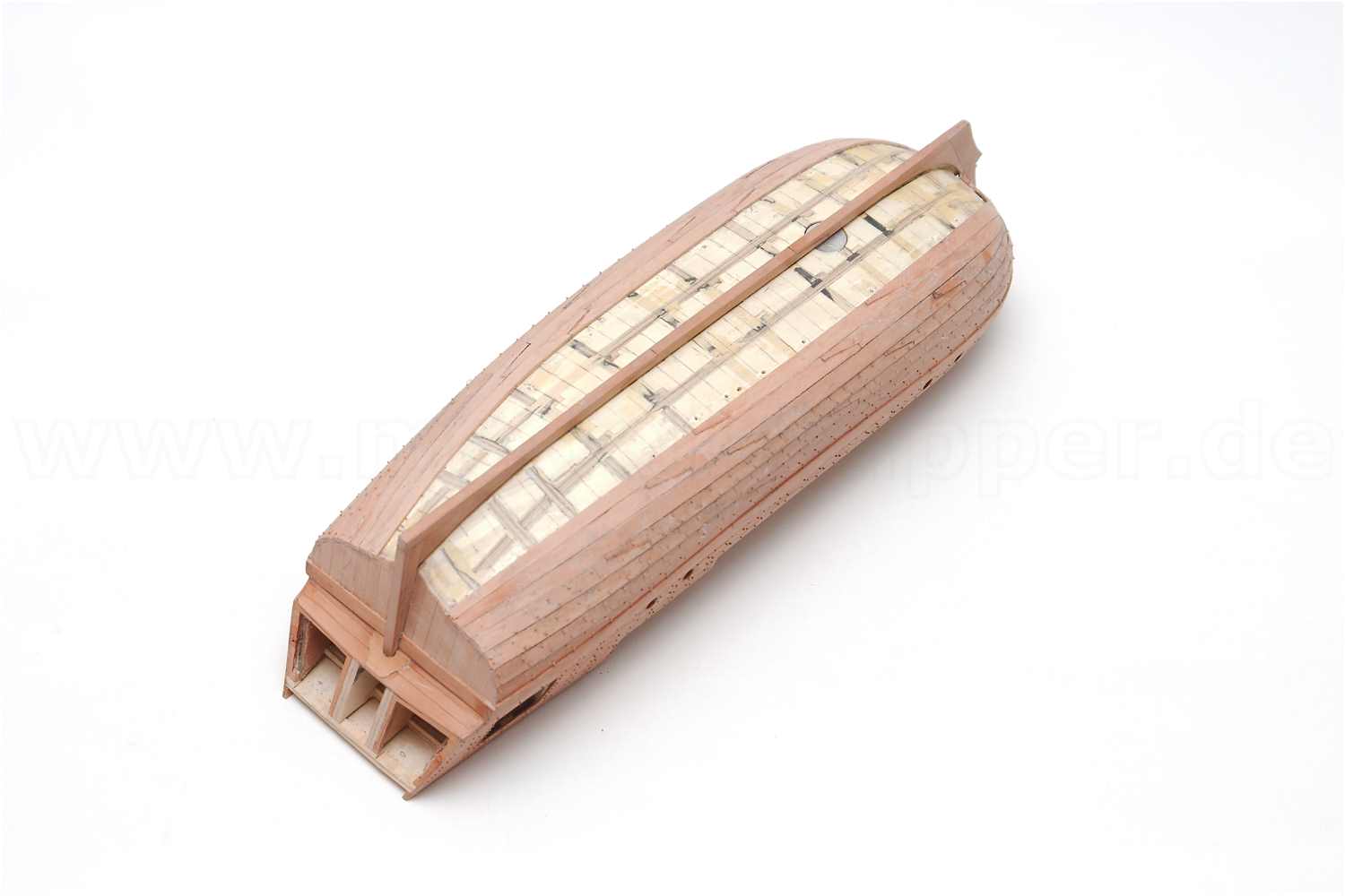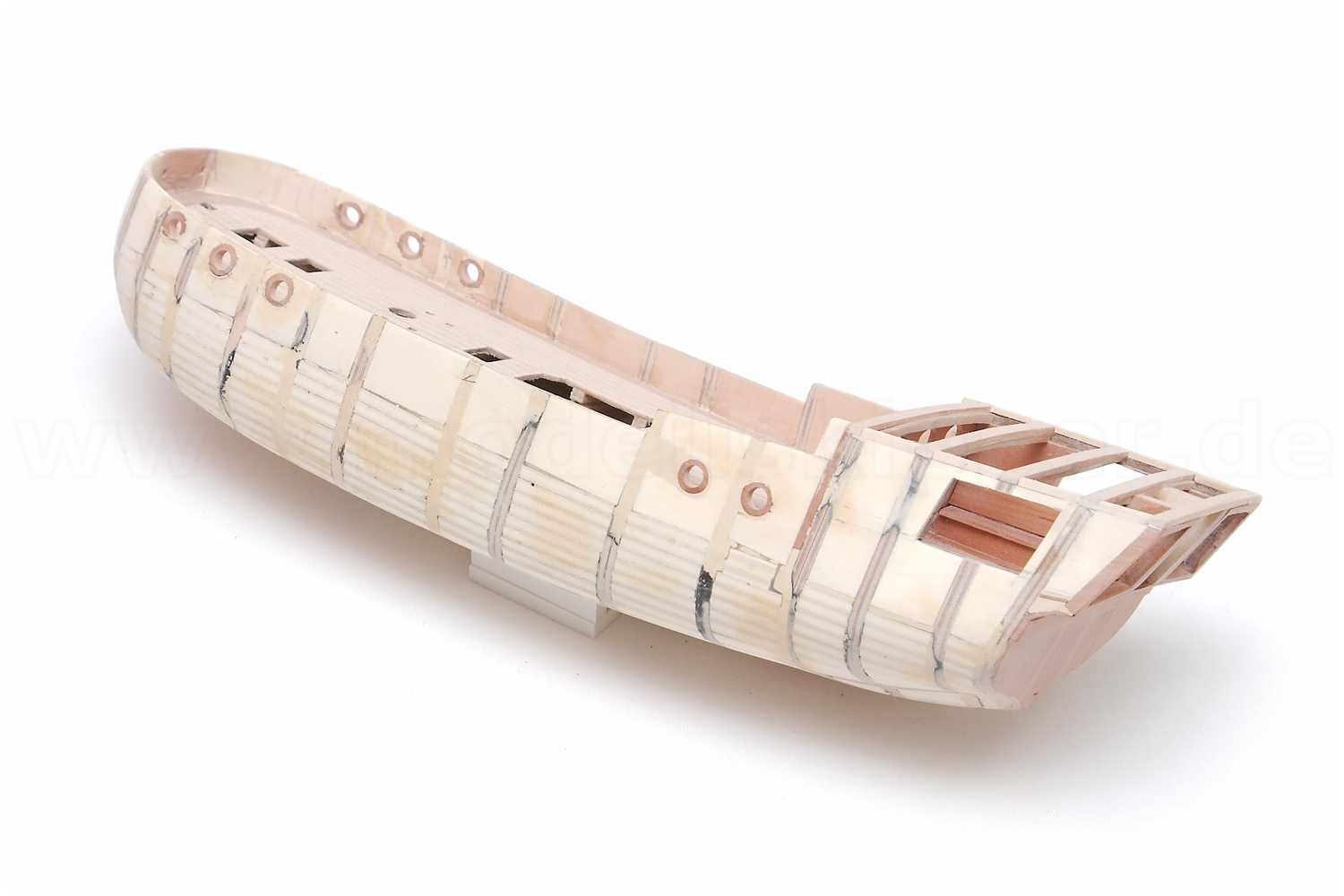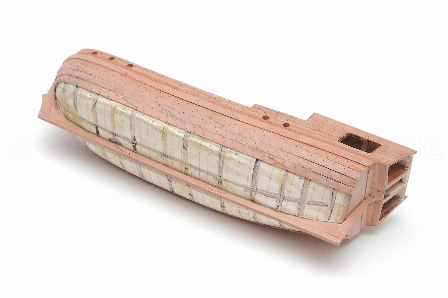 168 Std.: Rumpfkorpus geschliffen, Stückpforten eingesetzt und Erkerfenster ausgeschnitten