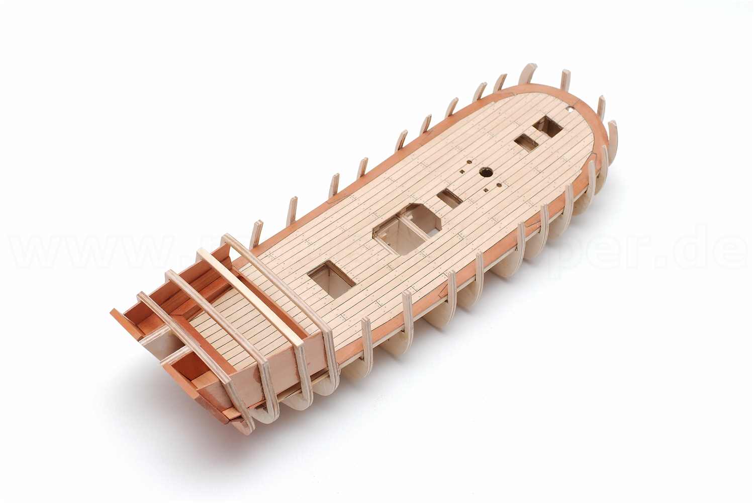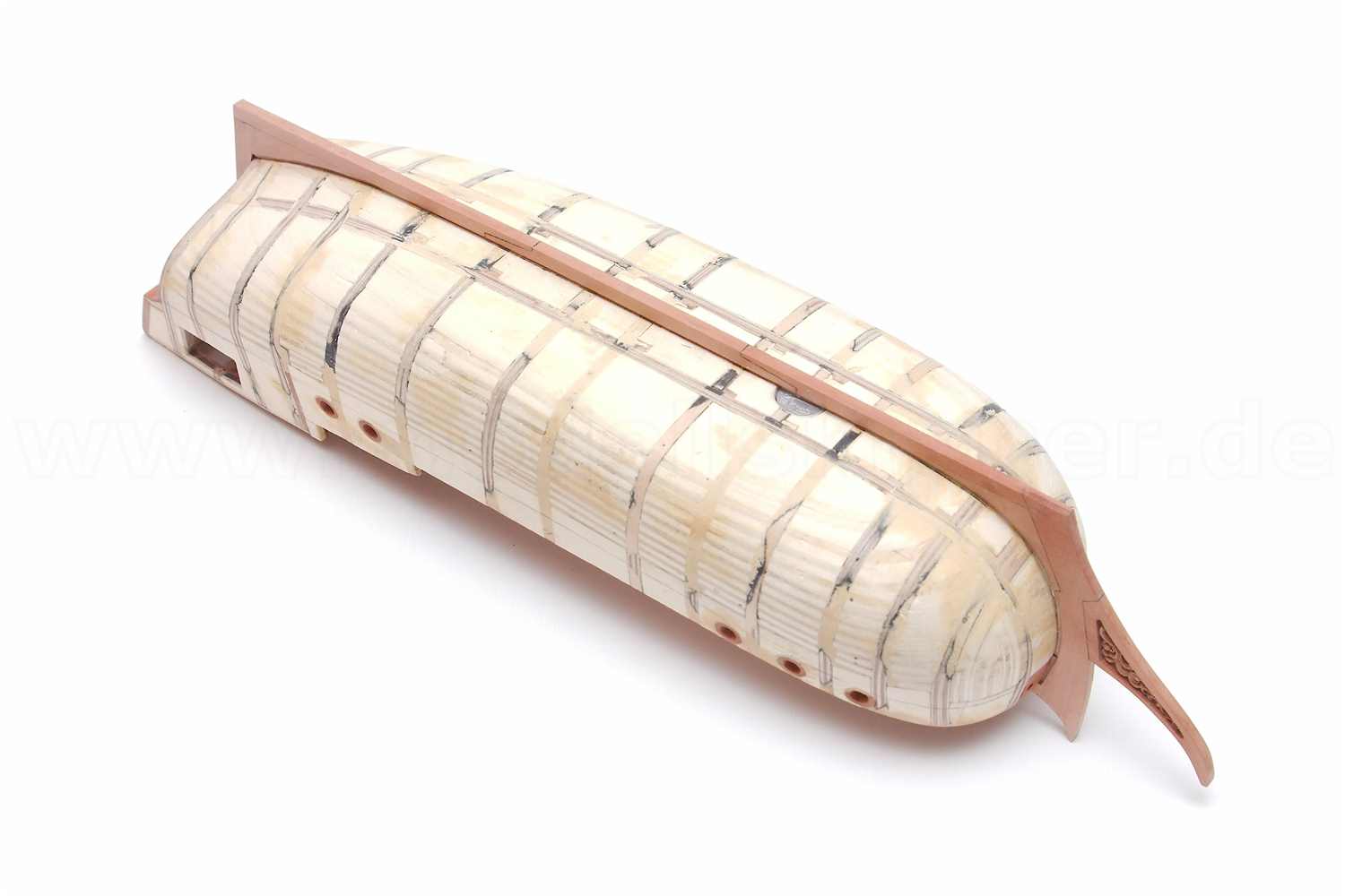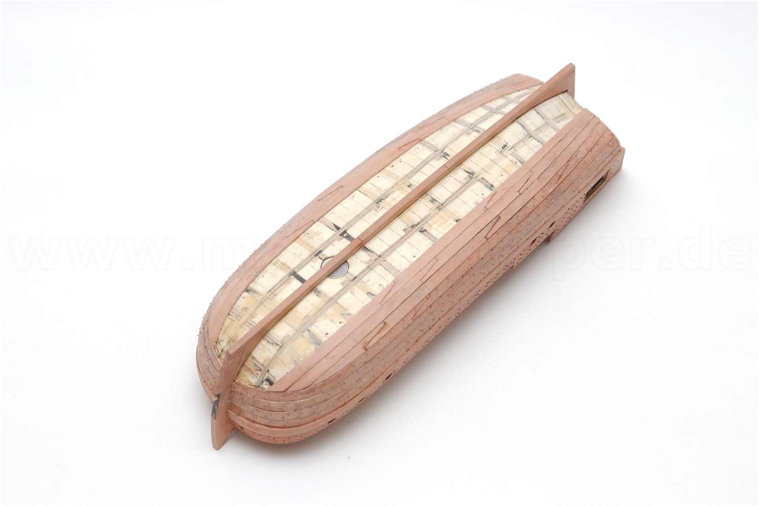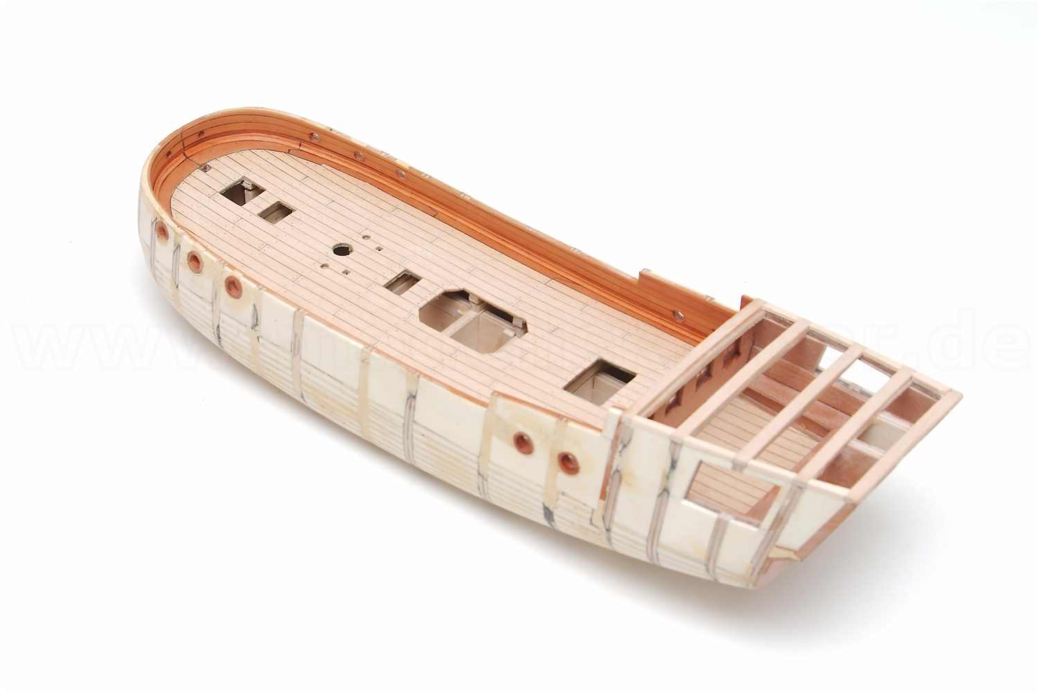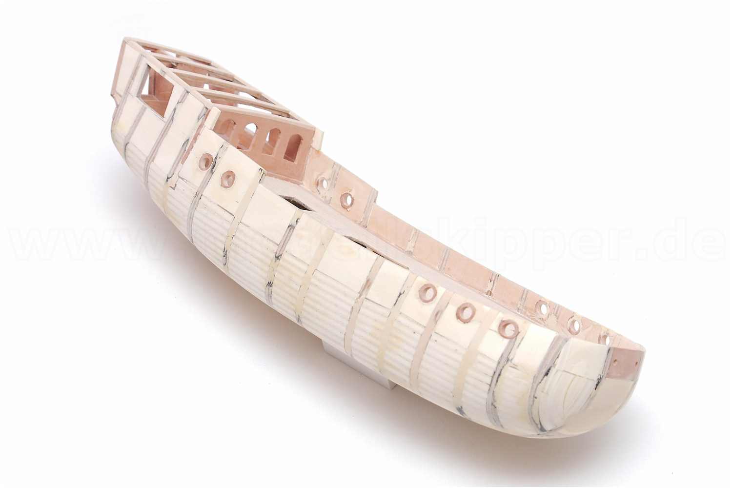 168 Std.: Rumpfkorpus geschliffen, Stückpforten eingesetzt und Erkerfenster ausgeschnitten