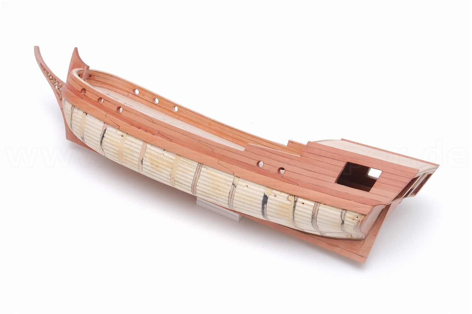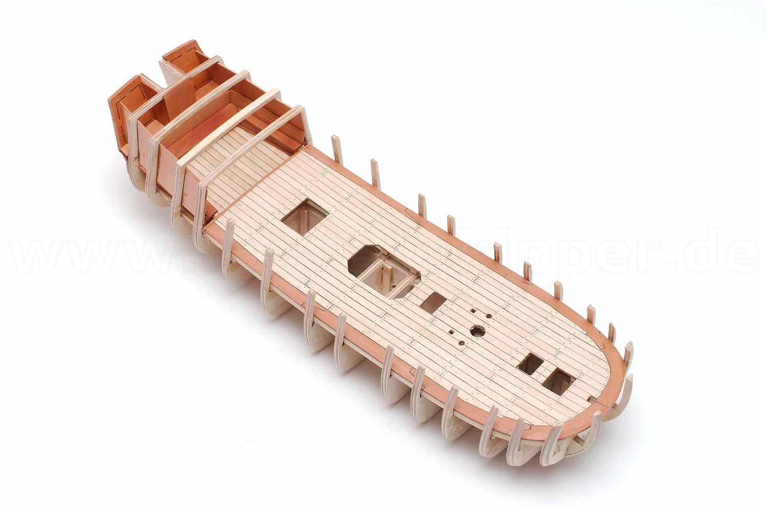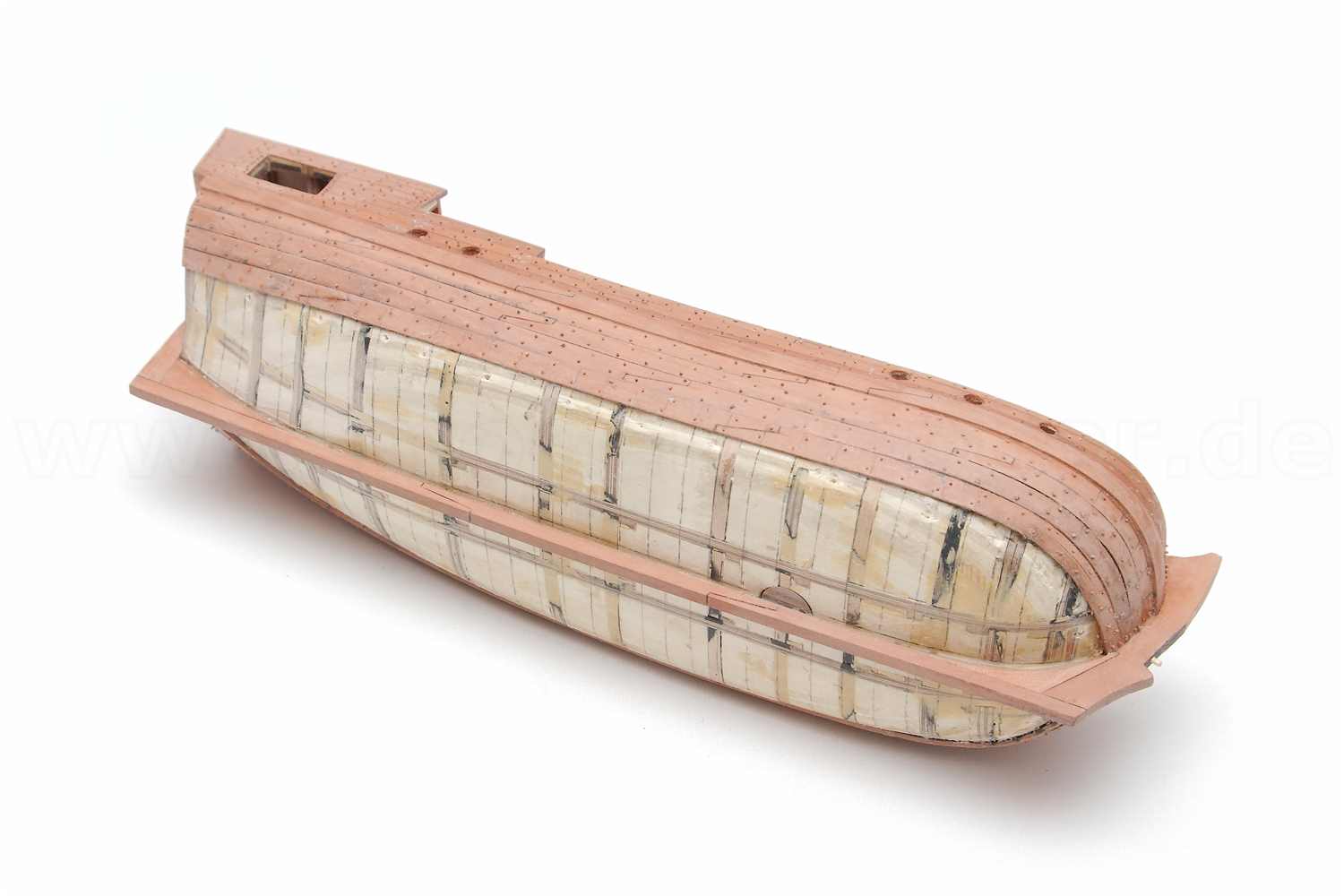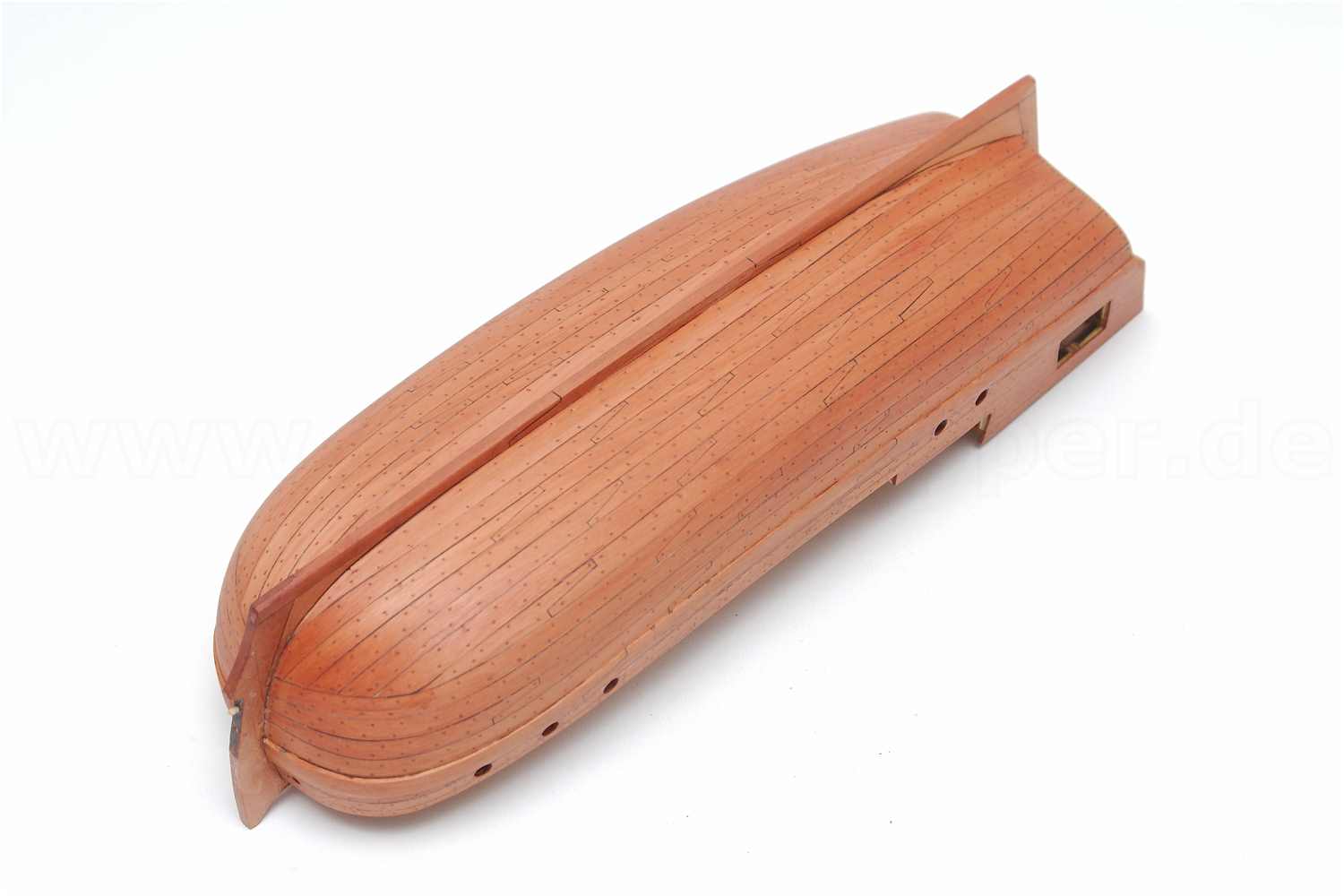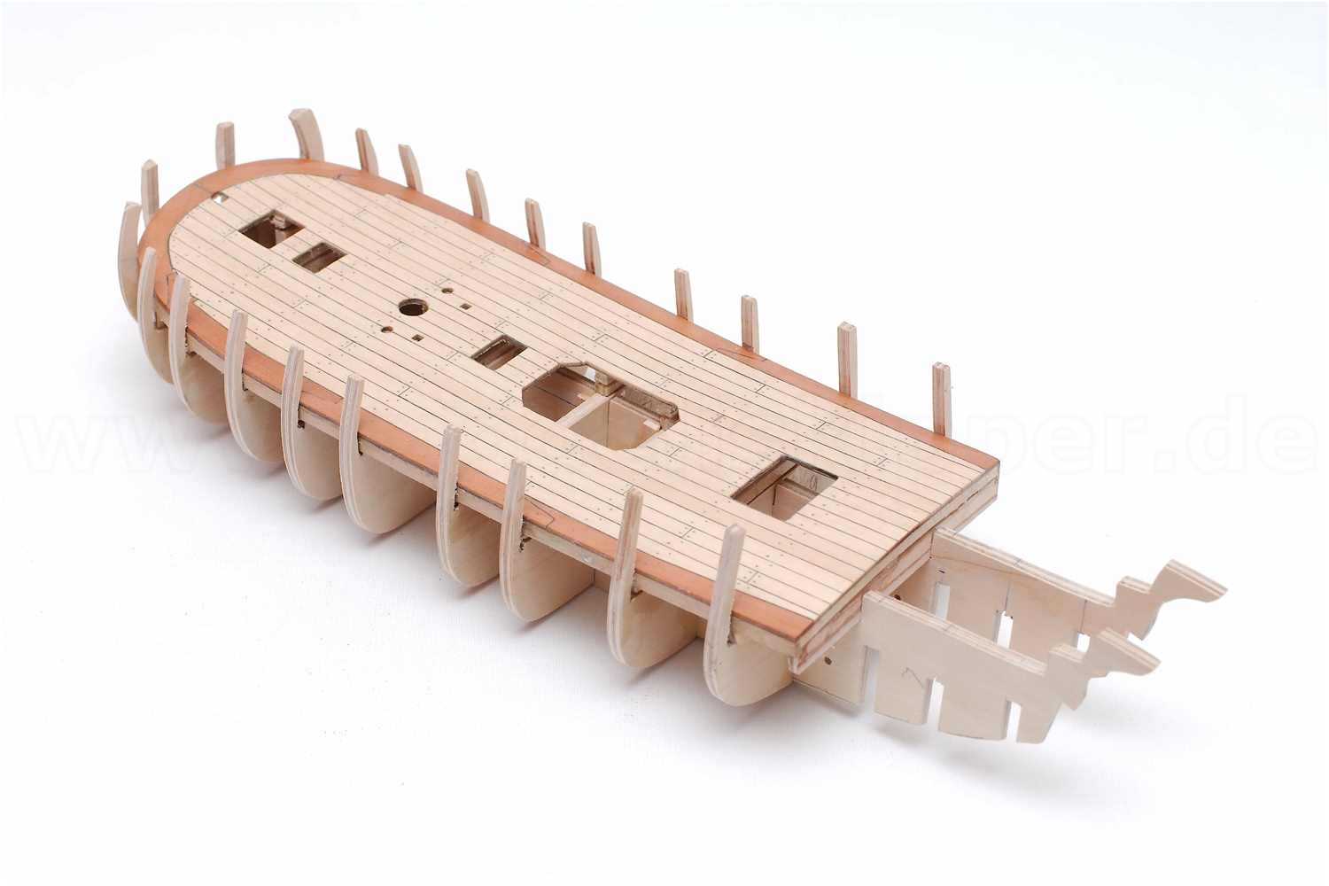 168 Std.: Rumpfkorpus geschliffen, Stückpforten eingesetzt und Erkerfenster ausgeschnitten