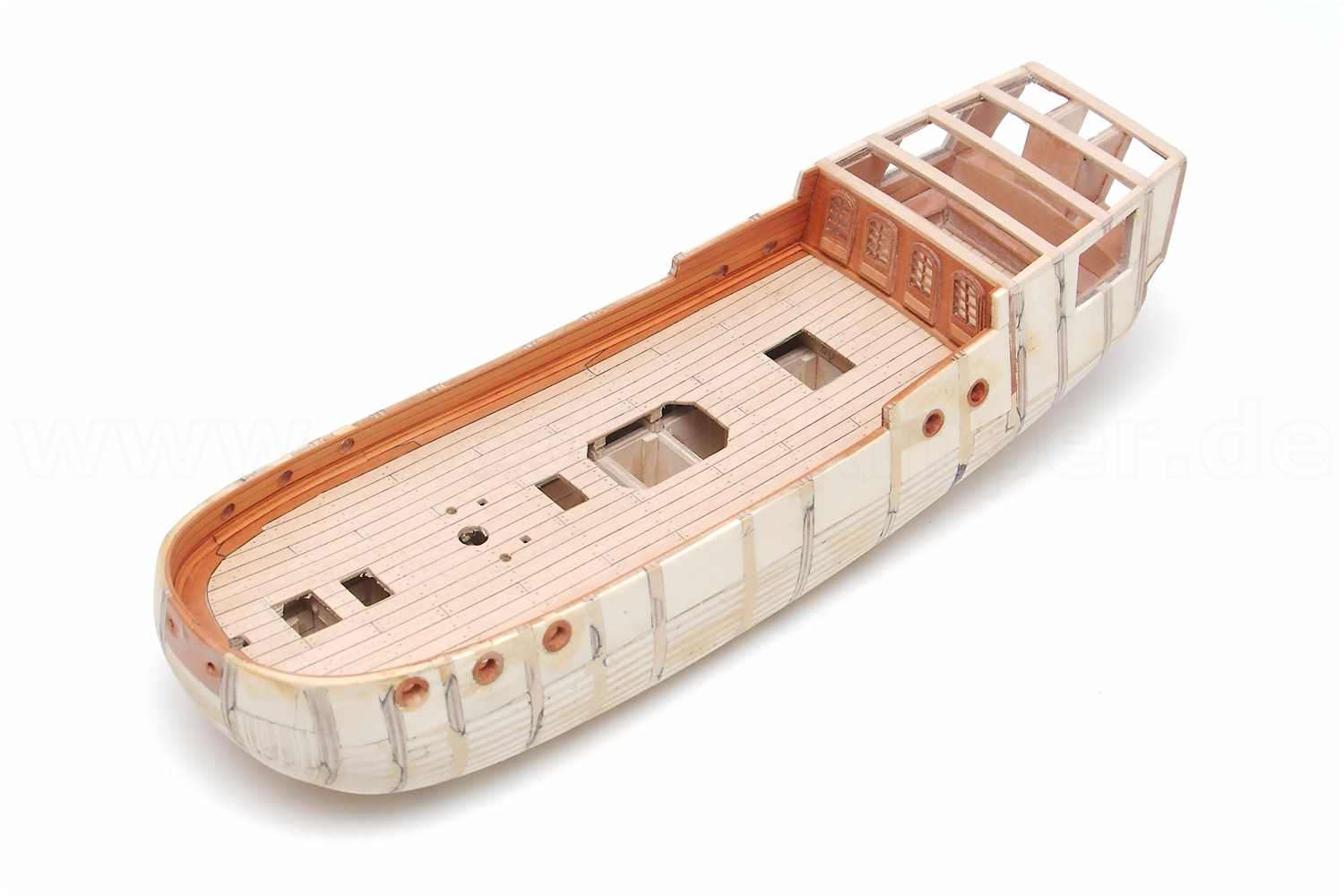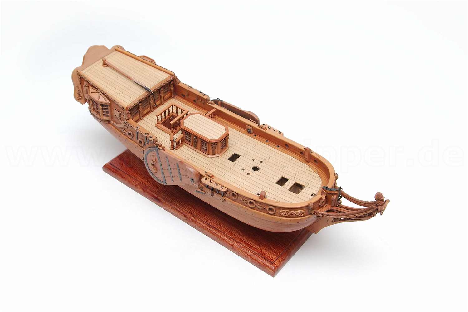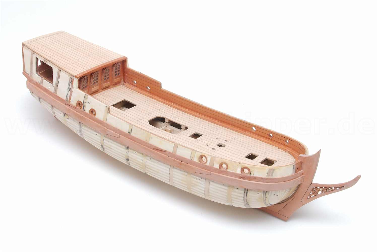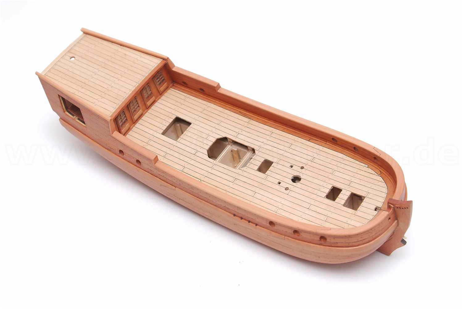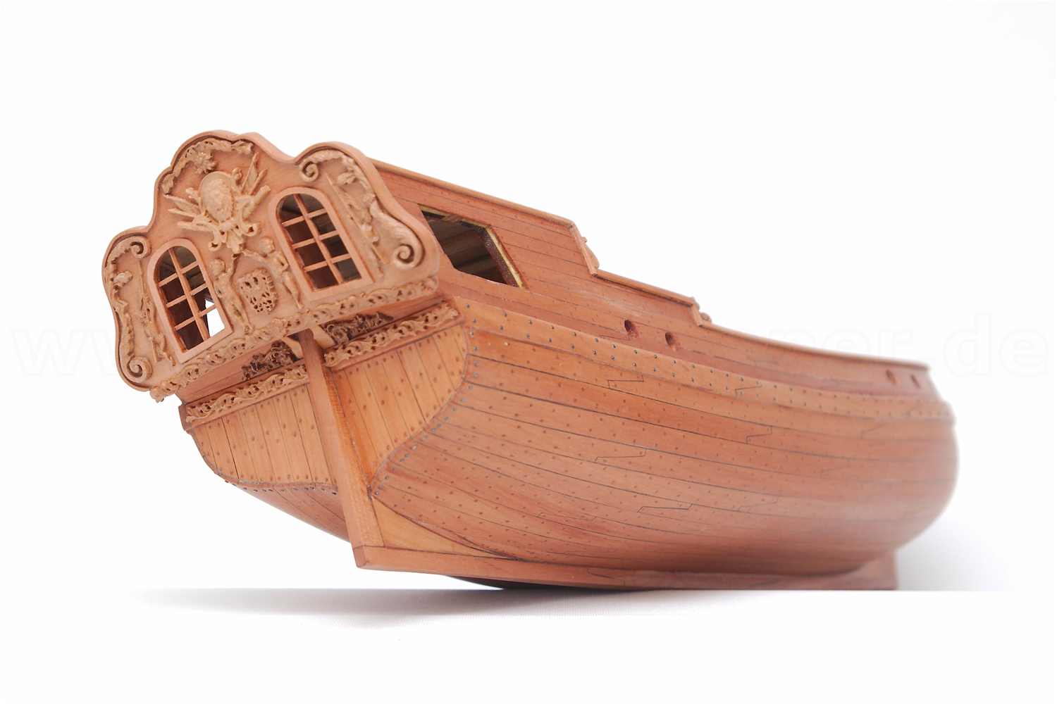 168 Std.: Rumpfkorpus geschliffen, Stückpforten eingesetzt und Erkerfenster ausgeschnitten