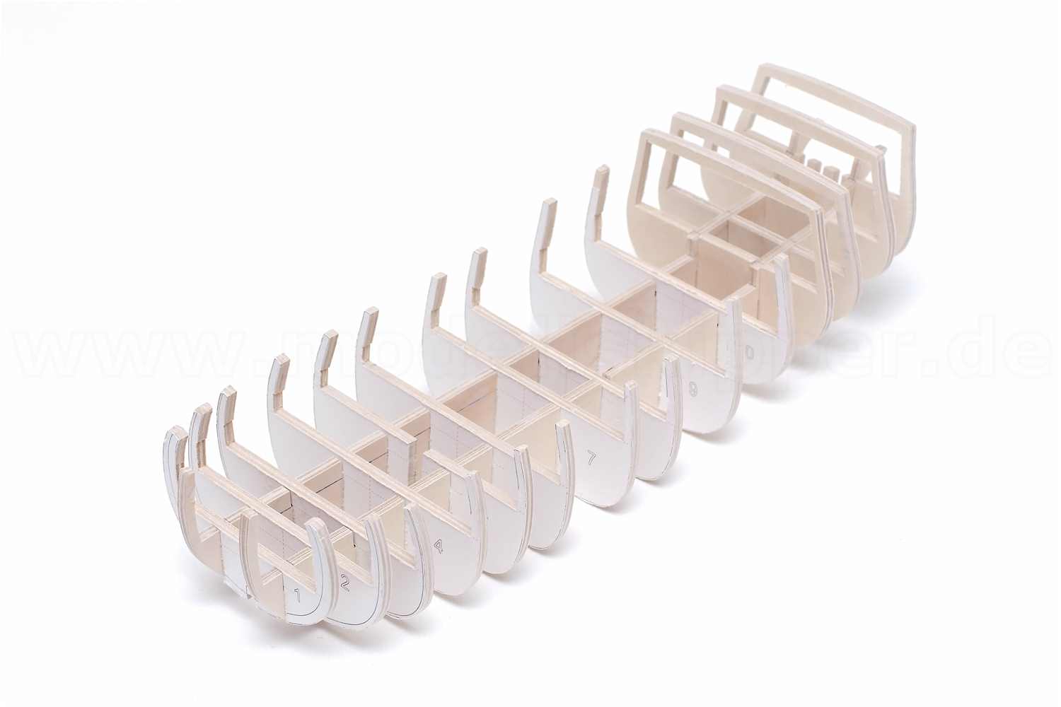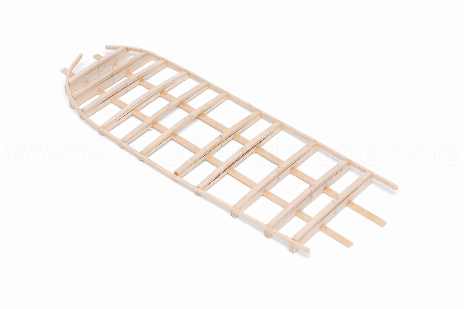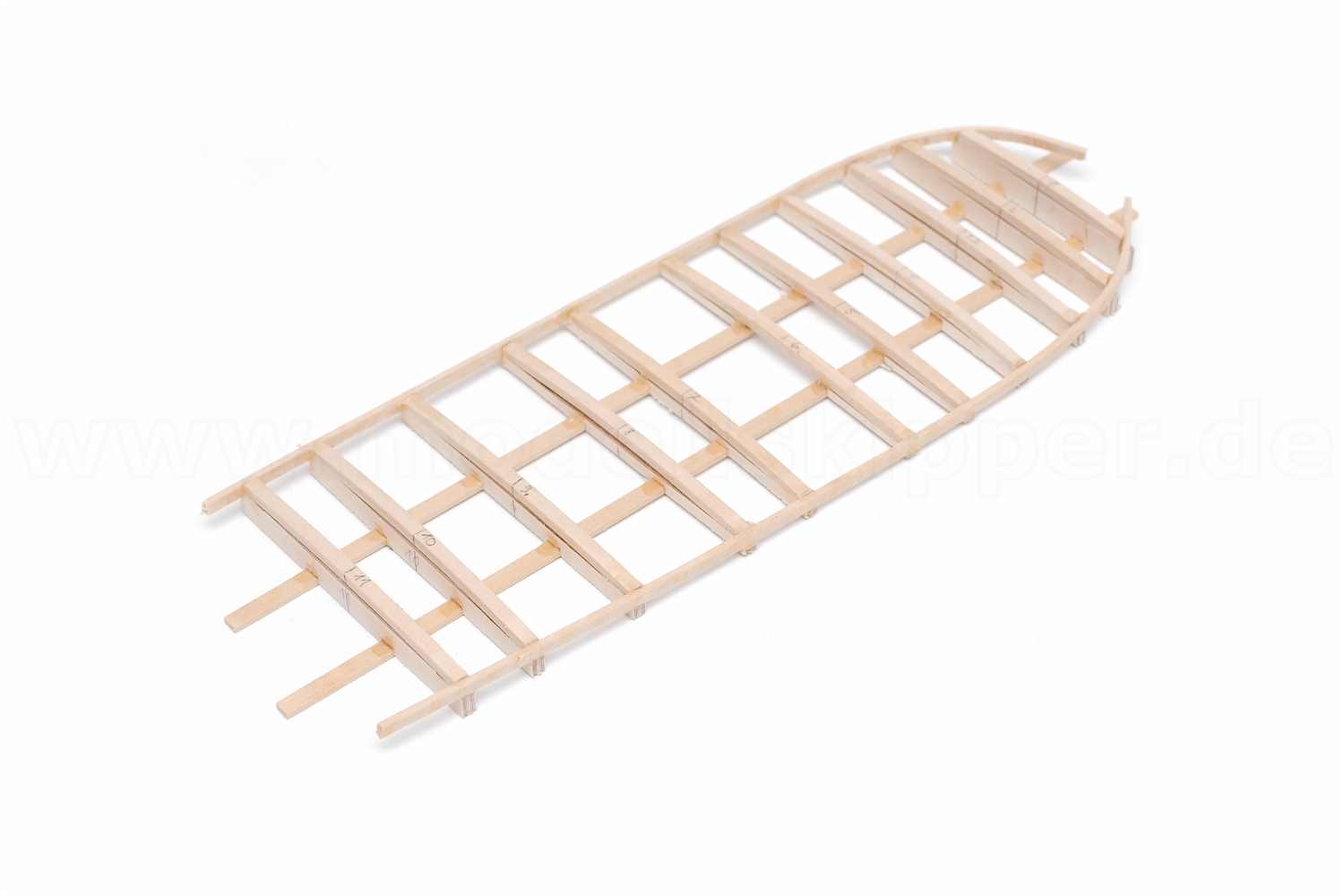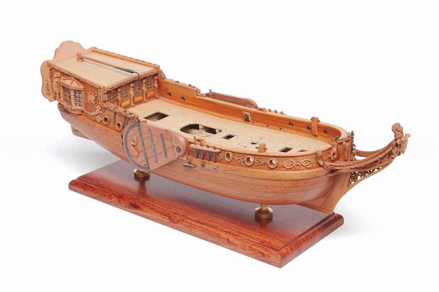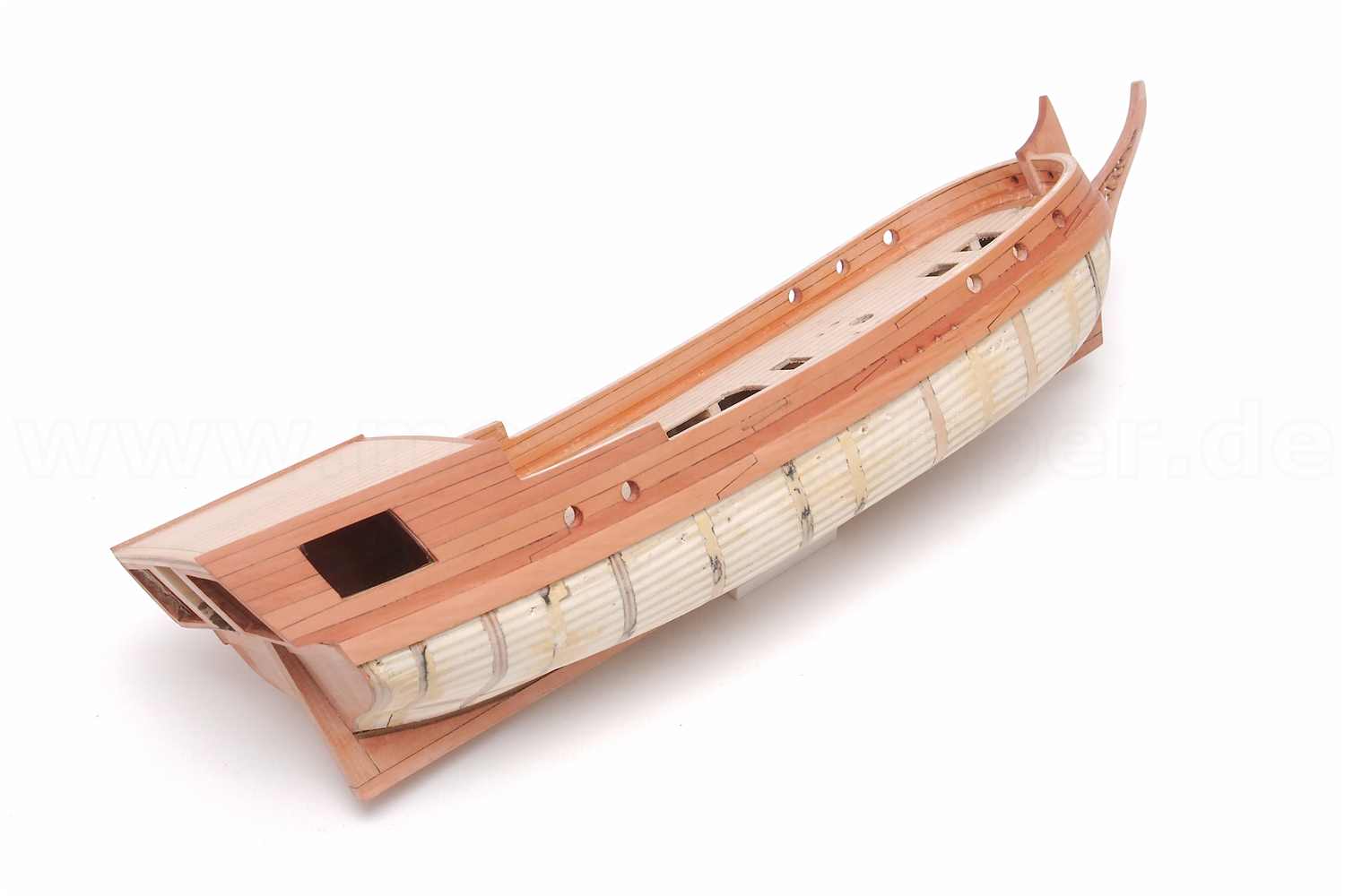 168 Std.: Rumpfkorpus geschliffen, Stückpforten eingesetzt und Erkerfenster ausgeschnitten