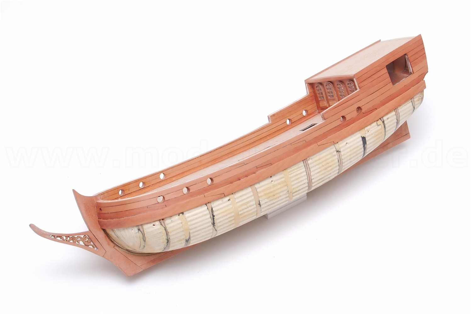 520 Std.: Ruder fertiggestellt, Dekor komplettiert, Rumpfbau abgeschlossen