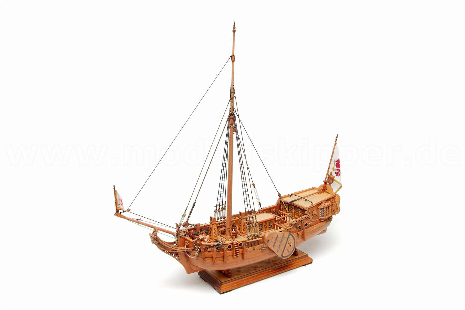444 Std.: Galion fertiggestellt, Stückpfortenkränze aufgeklebt und Ständerbrettchen lackiert