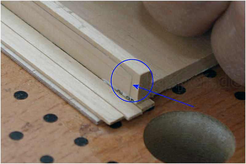 Die Seitenwand des Deckshauses erhält so eine ausgezeichnete Stabilität. Andernfalls verzieht sich diese und wird krumm, was beim späteren Zusammensetzen aller Teile Schwierigkeiten bringen könnte.
