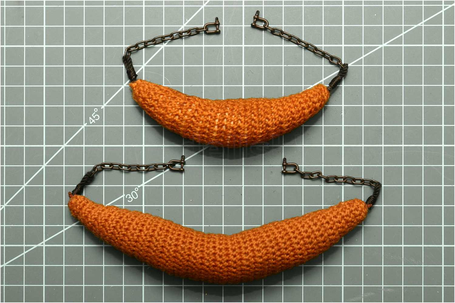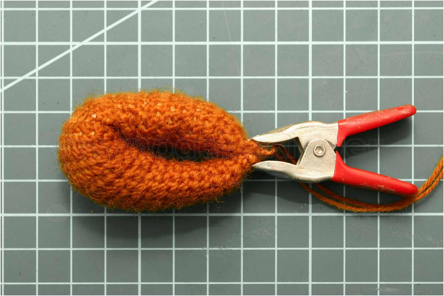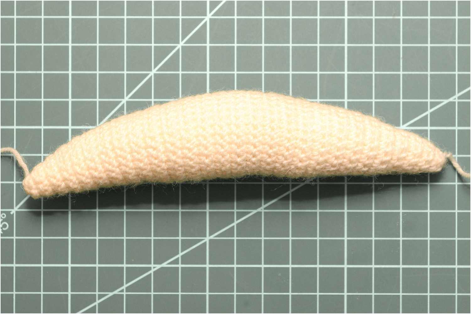 Die Strickbändselreste eignen sich nicht für eine spätere Befestigung am Modell. Diese wurden entfernt und die Stellen mit Sekundenkleber fixiert, um ein Aufdröseln zu vermeiden.