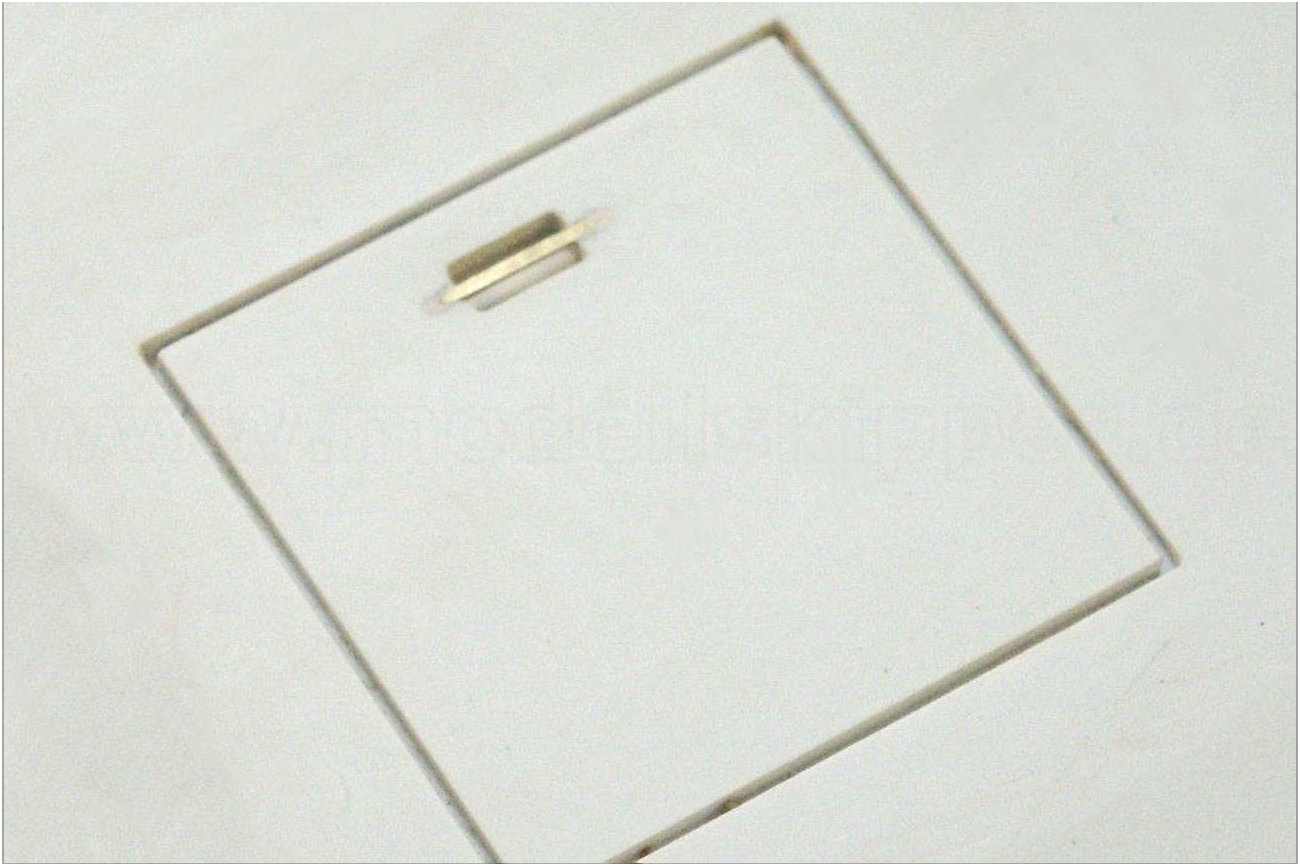Dann biegt man sich eine entsprechend passende Krampe aus Messingdraht, steckt diese durch die Löcher und fixiert das Ganze auf der Unterseite mit Sekundenkleber.