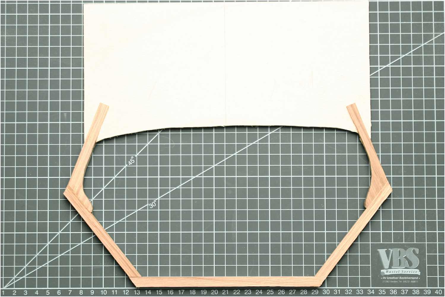 Nun wird die Leiste an den beiden Enden eingekerbt und dann von innen auf die Spantschablone verleimt.