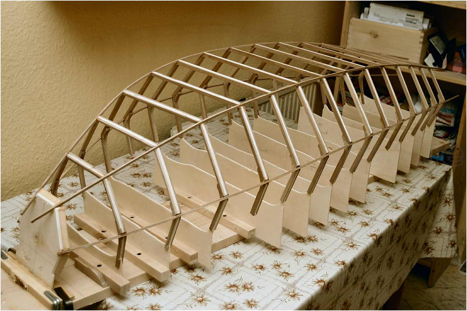 Das ist natürlich erst einmal recht wabbelig und man muss höllisch aufpassen, dass die Spanten nicht auseinanderbrechen.