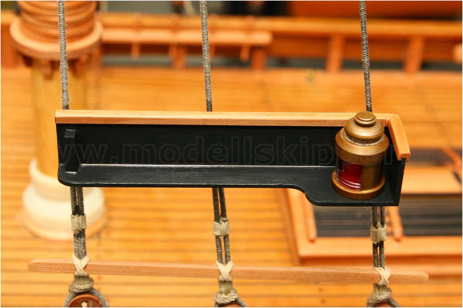 Diese Hölzer sind mit Löchern versehen. Der Lampenbord kann so einfach an die Wanten angebändselt werden.