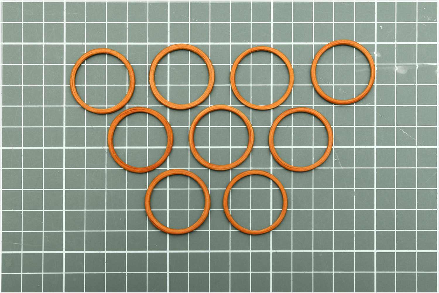Die fertigen Ringe sind nur noch 3 mm breit und 2,5 mm stark, haben noch etwa 4 Lagen, das reicht aber aus, um eine genügende Stabilität und Bruchfestigkeit zu gewährleisten.