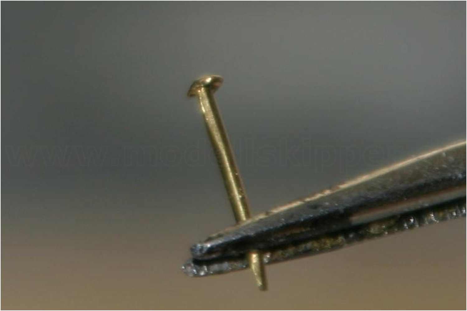 Hinzu kommt die Größe des Kopfes. Bei meinen kleinsten Messingnägeln hat der Kopf schon einen Durchmesser von 1,4 mm.