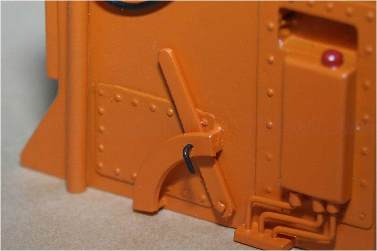 Sieht man auf dem vorhergehenden Bild, noch im unlackierten Zustand, dass die Nietköpfe nicht abgerundet sind, relativiert sich dieses kleine Problem etwas, schon nach dem Farbauftrag.