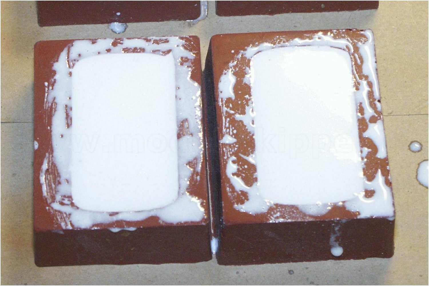 Die Form wurde halb gefüllt und nochmals in allen Ecken mit dem Pinsel ausgestrichen.