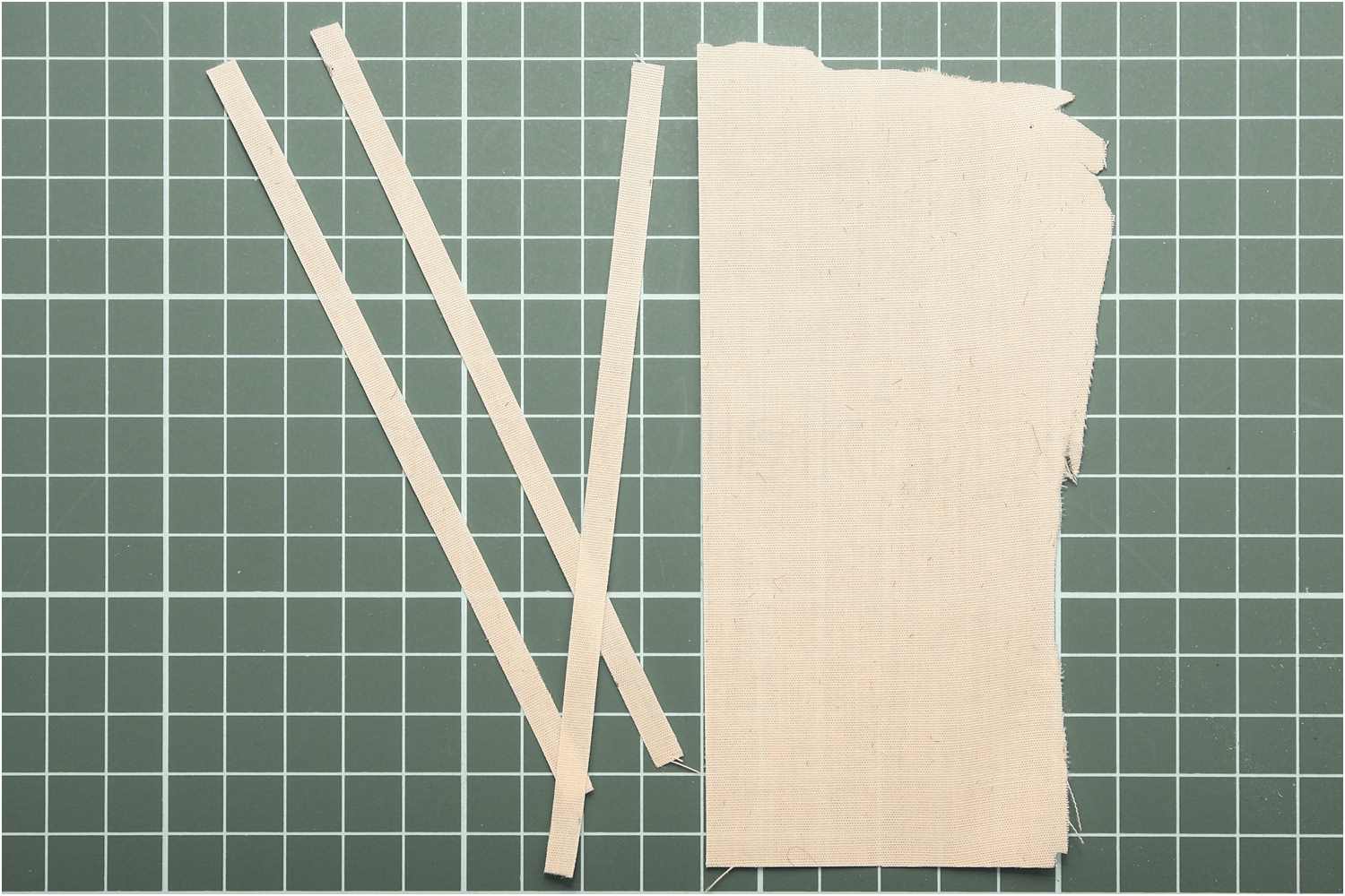 Aus dem so "gestärkten" Stoff können entsprechende Streifen mit einem scharfen Klingenmesser geschnitten werden, ohne dass der Stoff ausfranst.