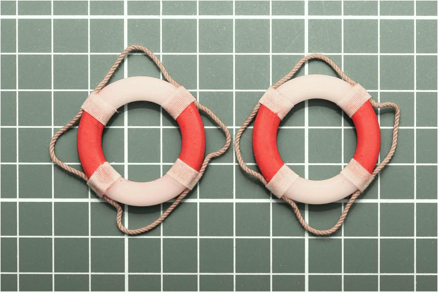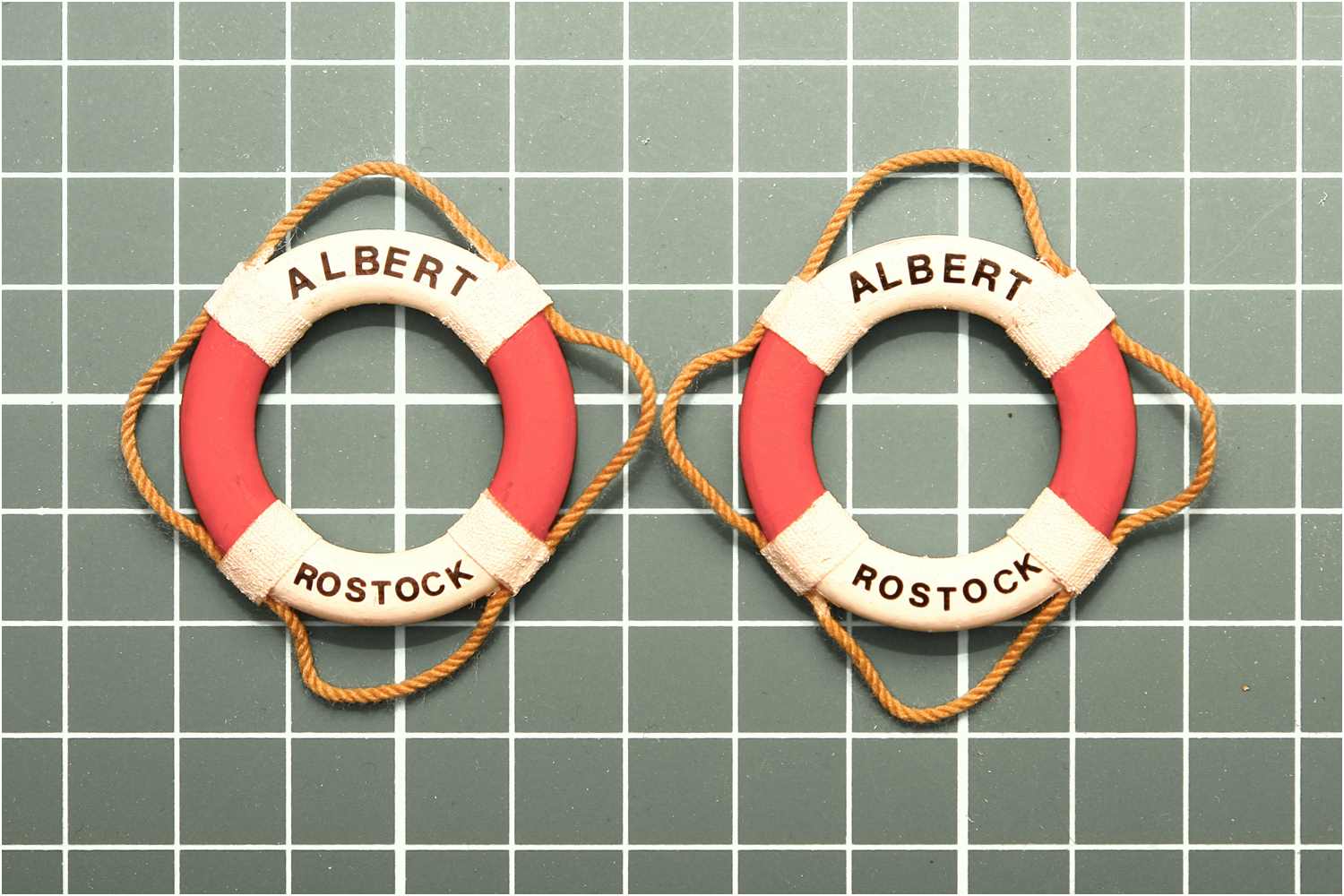 Solche Rettungsring-Imitationen gibt es in den verschiedensten Größen zu kaufen und man sieht sie oftmals unverändert auf vielen Modellen. Schon früher habe ich diese hässlichen Plastikbändsel immer abgeschnitten und "echtes Tauwerk" mit Heftpflaster angeklebt.