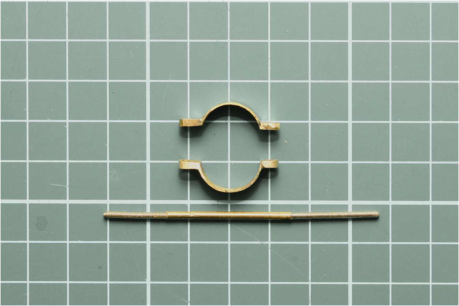 Auf die beiden Enden des eigentlichen Schotbügels, aus 2 mm Messingdraht, wurde ein Gewinde geschnitten und anschließend gebogen. Beim ersten Biegeversuch brach allerdings ein Gewinde ab, beim zweiten Mal habe ich den Draht vorher ausgeglüht.