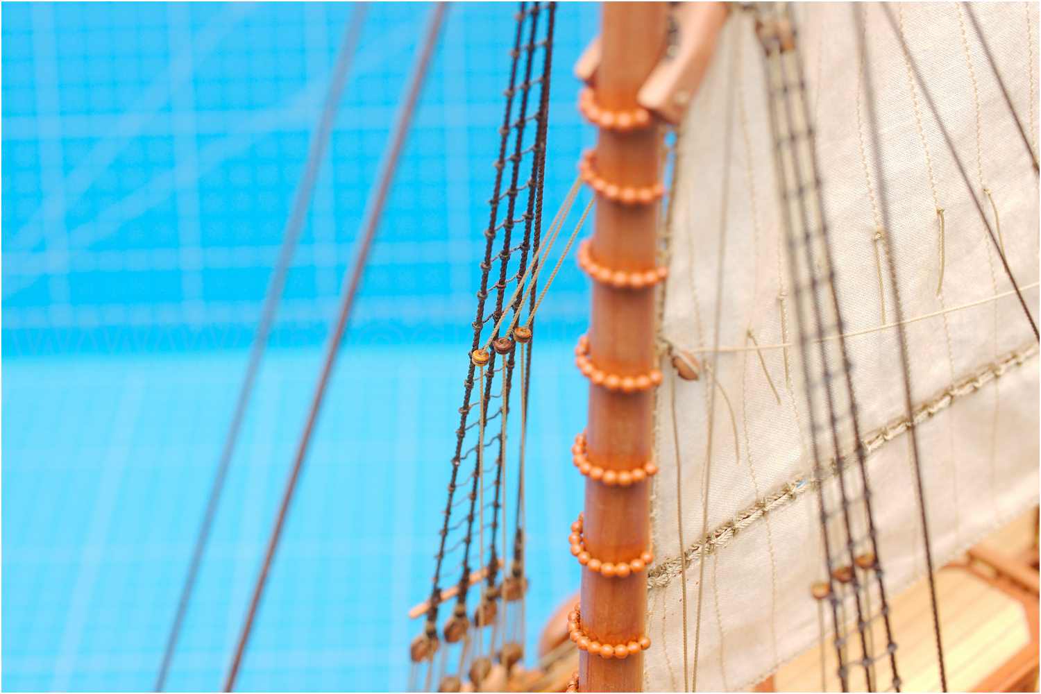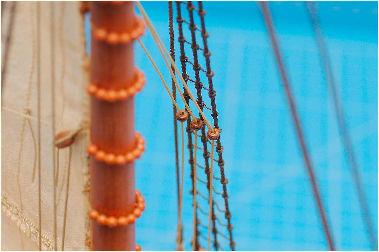 An der Innenseite von Wanten sind oftmals zahlreiche Leitkauschen angebunden, die das laufende Gut zu den Belegstellen führen.