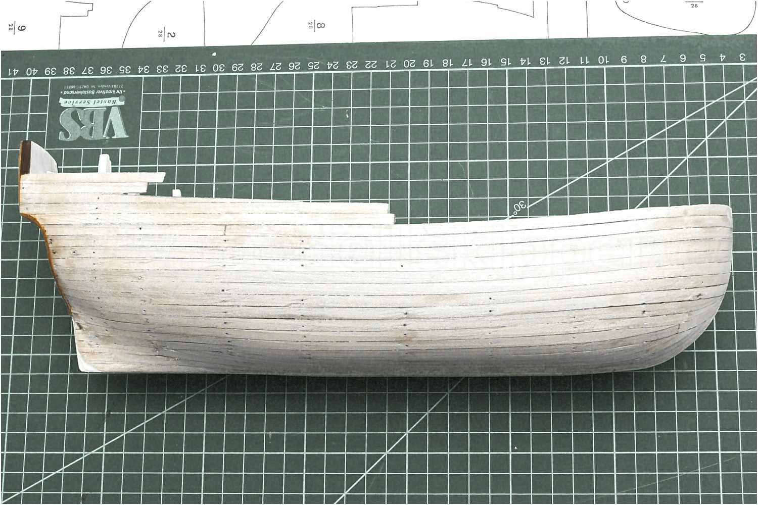 Der geschliffene Rumpf, die Schleifmarkierungen sind nun kaum mehr zu erkennen. Man erhält eine hervorragende Basis für die spätere Beplankung.