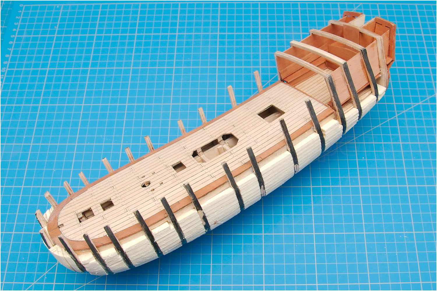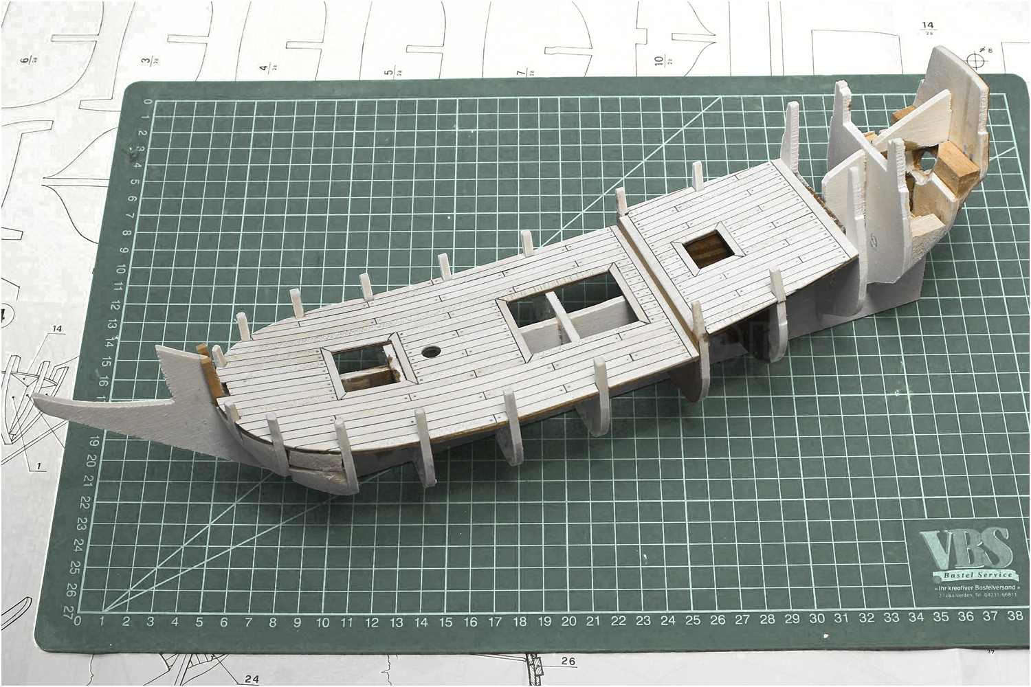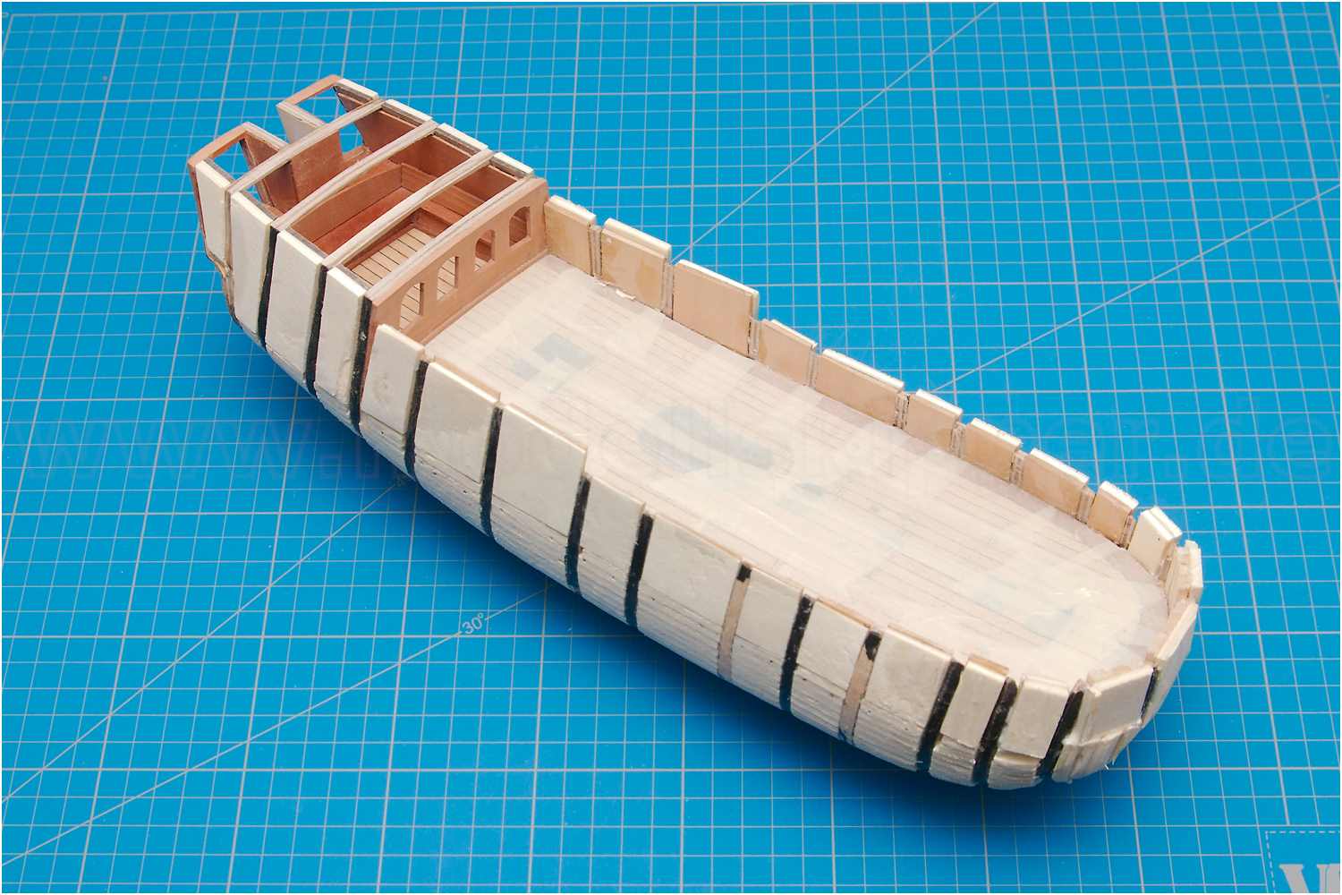 Es folgt das Ausfüllen der Seitenwände von Aufbauten und der Bereich des Schanzkleides.