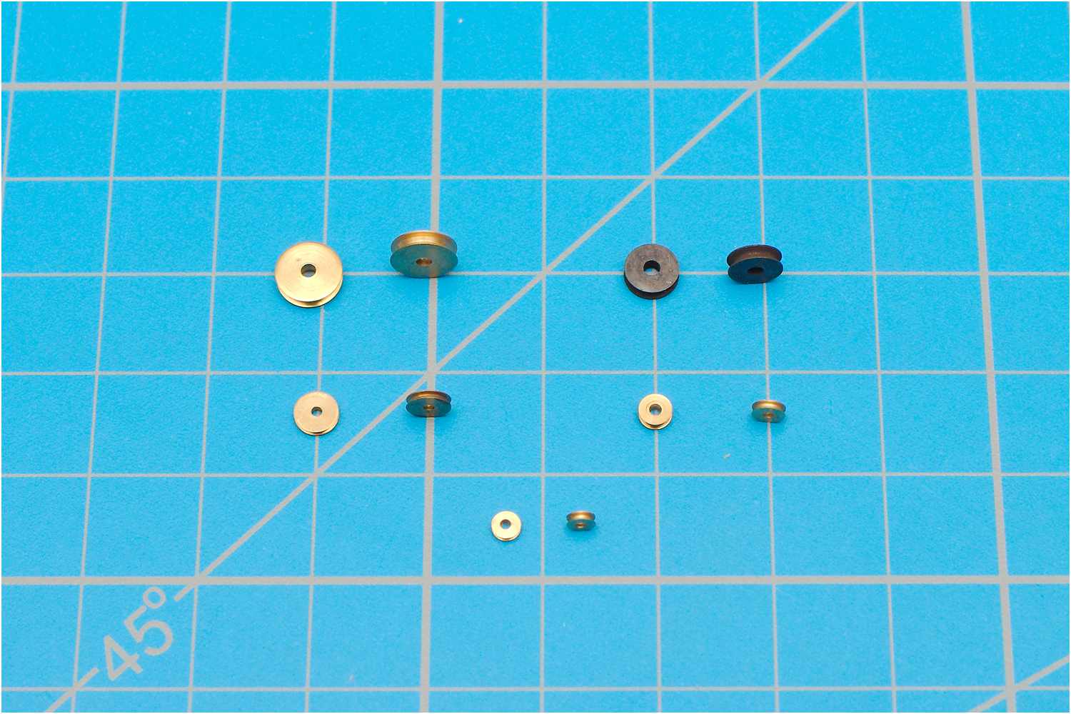 Müssen solche Kauschen hergestellt werden, verwendet man z.B. handelsübliche Messingscheiben, die im Modellbauhandel in verschiedensten Größe zu finden sind.