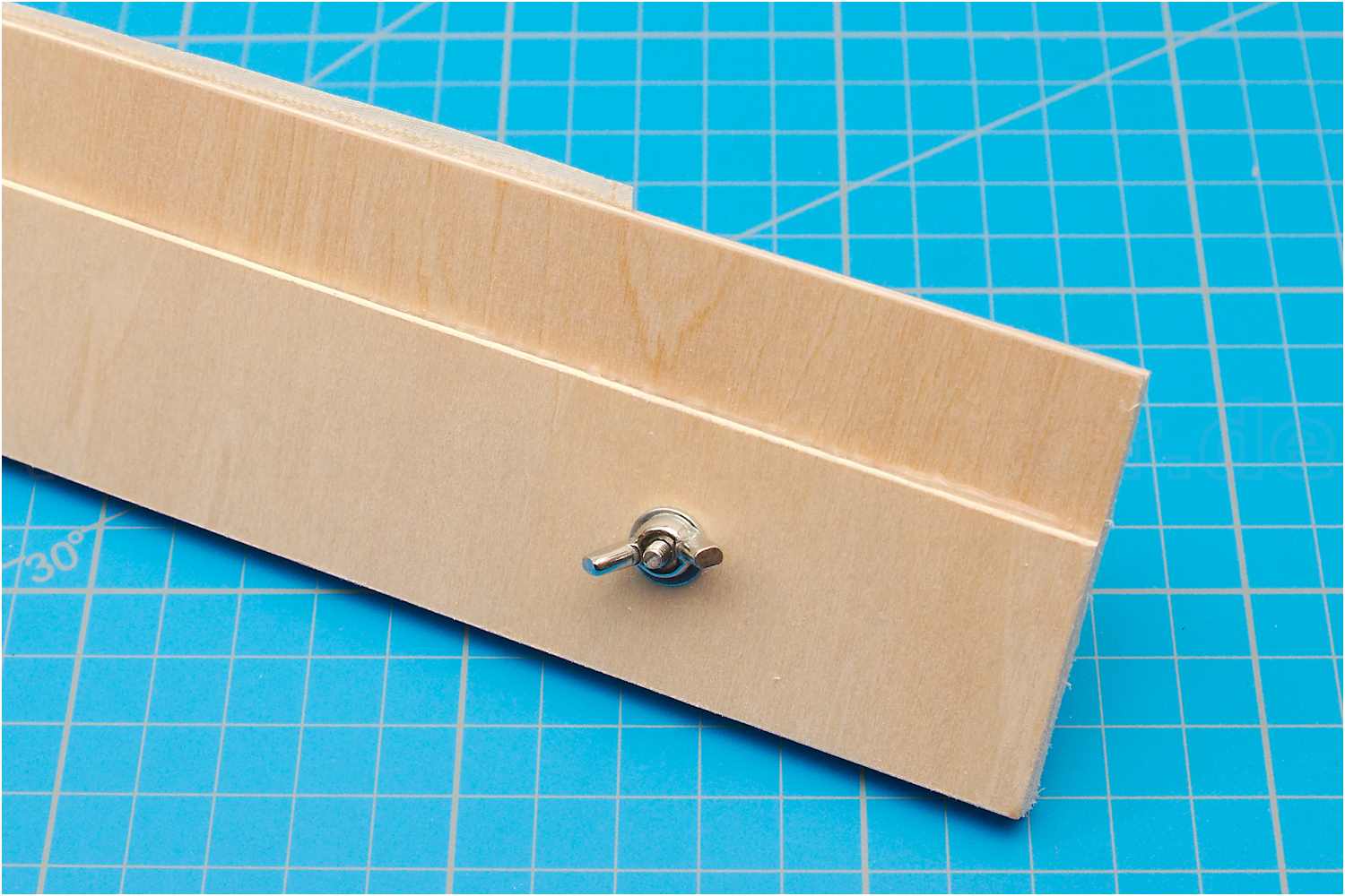 Dafür wurde eine Halterung aus zwei Sperrholzbrettchen gebaut.