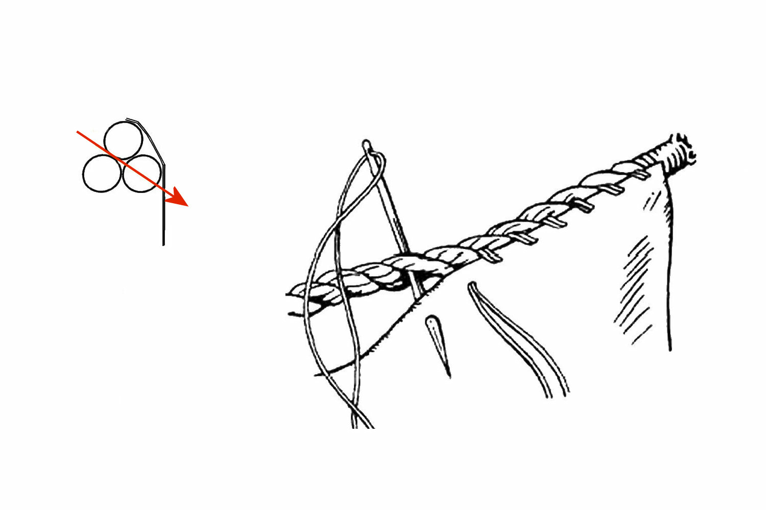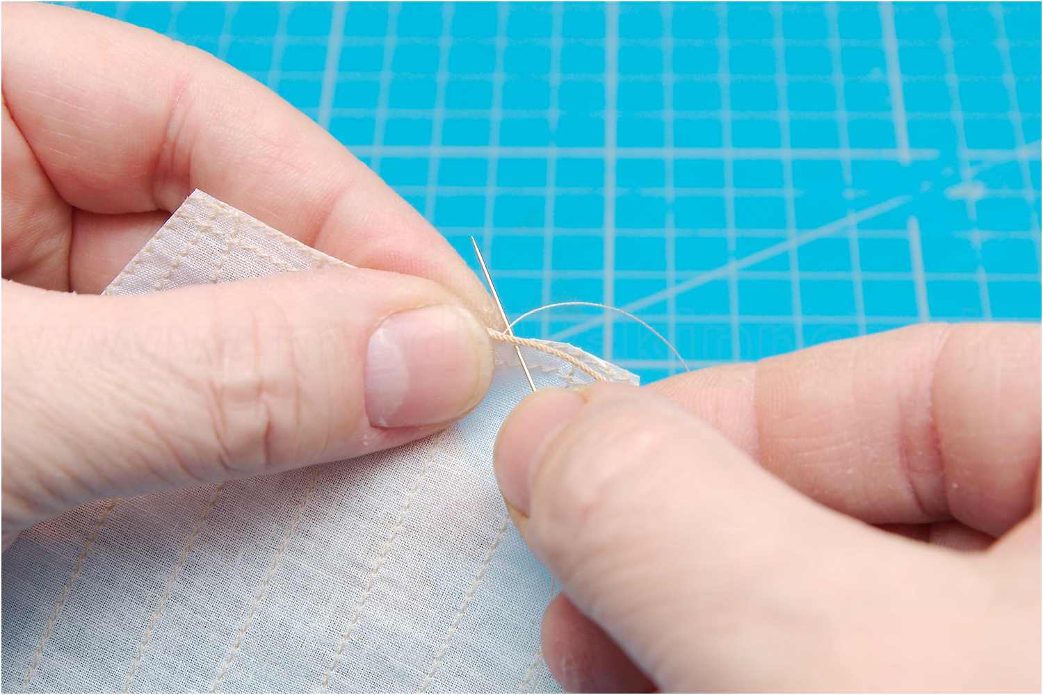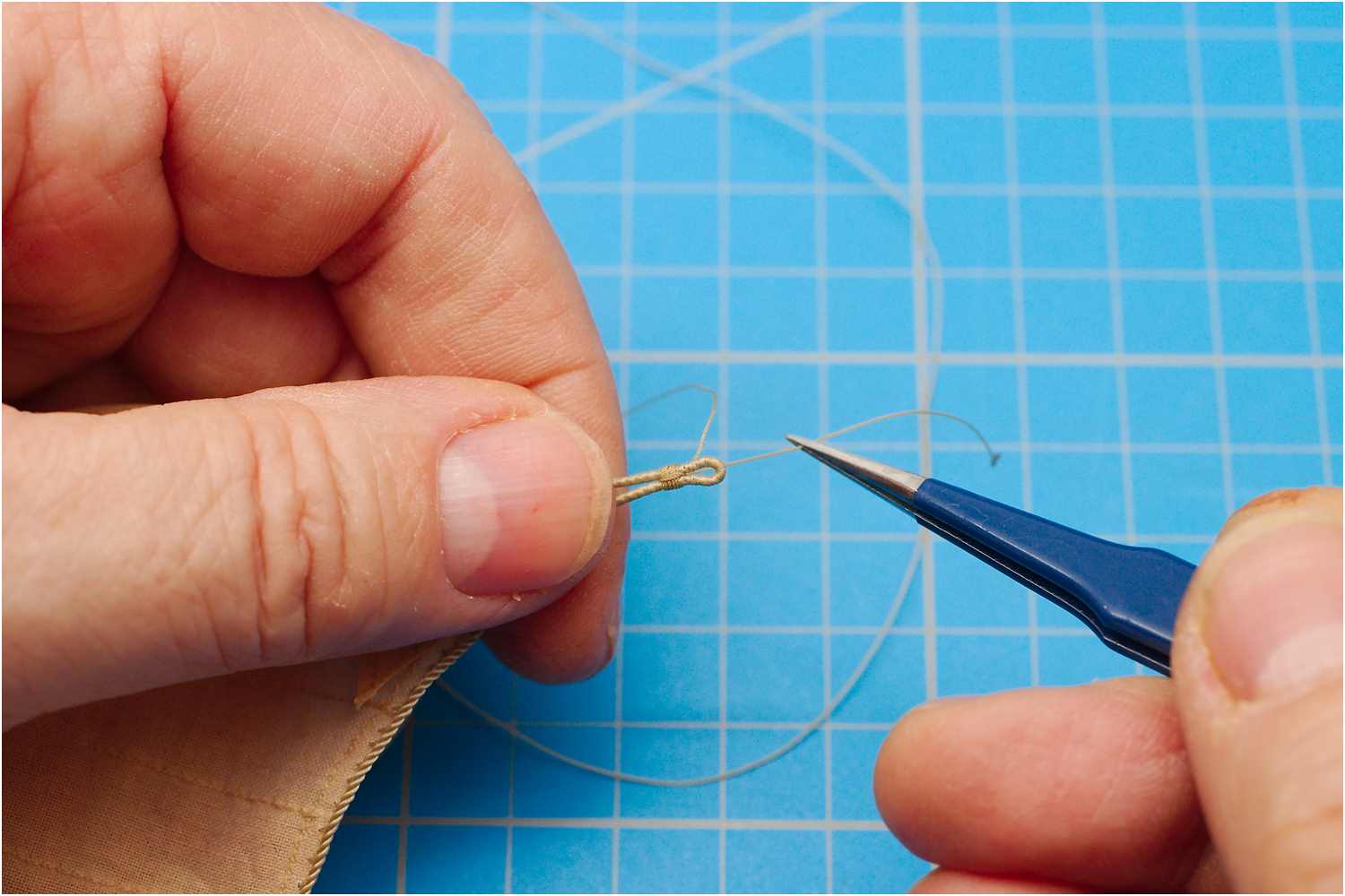 Wie z.B. in NJ gezeigt, sticht man beim Nähen die Nadel durch das Liektau und erhält so ein recht saubere Ergebnis.