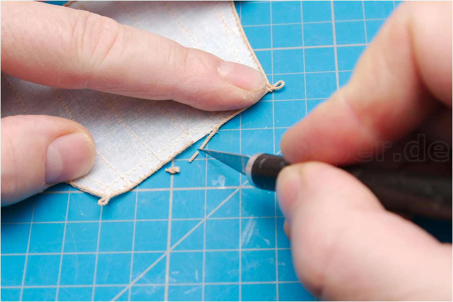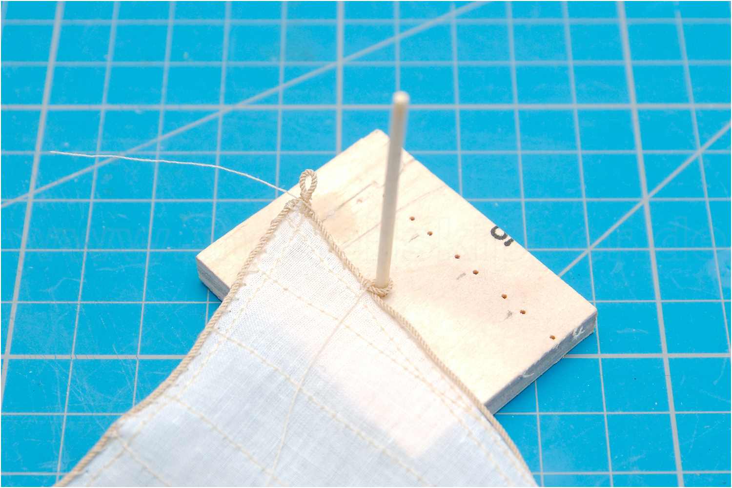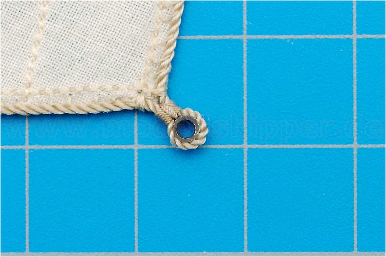 Zum Abschluss noch mit etwas Sekundenkleber versiegeln und das Segel ist komplett.