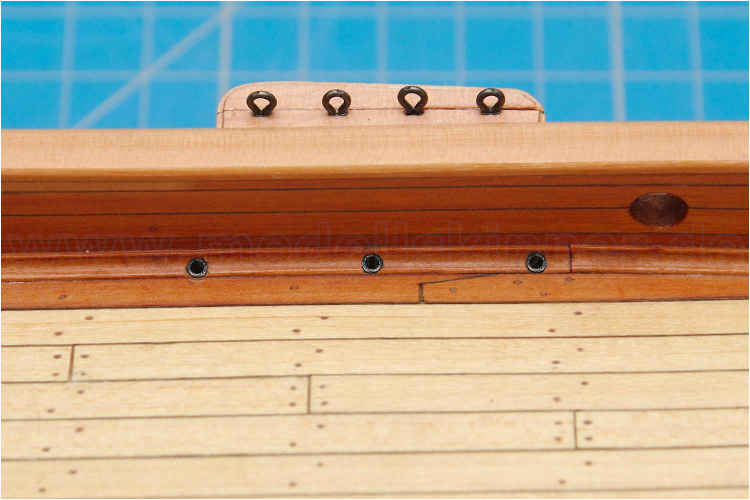Aus diesem Grund muss man auch nicht zwangsläufig den Modellrumpf komplett durchbohren. Separate Öffnungen an Deck und an der Außenseite des Rumpfes reichen i.d.R. vollkommen aus.