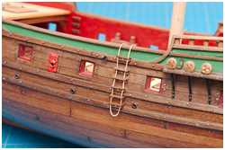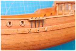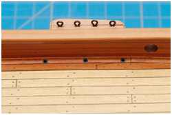 Die Speigatten führen vom Wassergangs des Decks schräg nach unten durch die Beplankung.