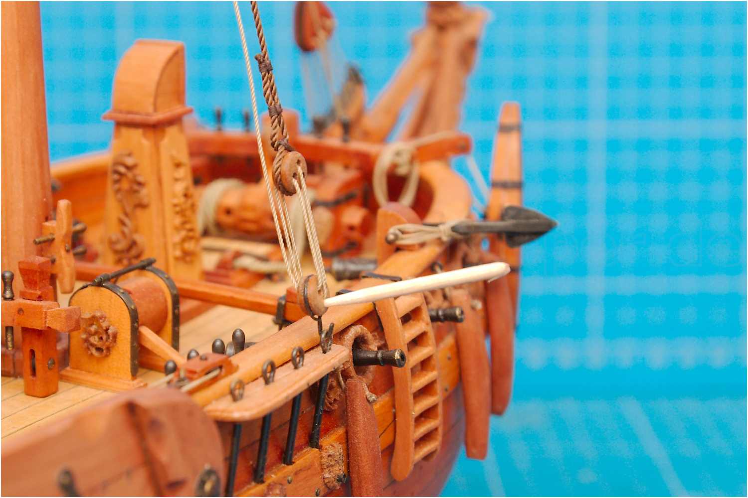 Um beim Steifsetzen das Durchrutschen des Taus zu vermeiden, fixiert man es mit einem Zahnstocher o. Ä. im Loch des Blocks oder der Juffer.