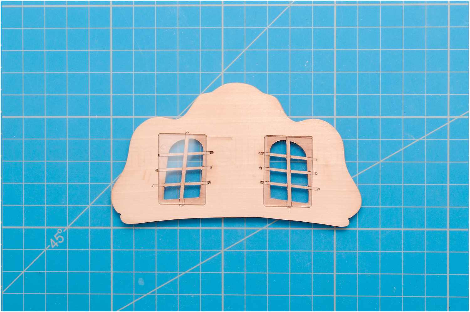 Hierzu wurde ein dünnes Messinggitter verwendet, zugeschnitten, brüniert und mit einem handelsüblichen Laminiergerät in Dokumentenfolie eingeschweißt.