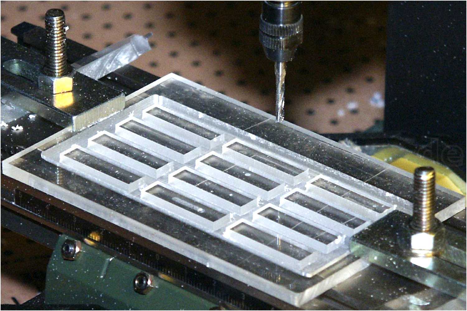 Hierfür kann sog. Acrylglas verwendet werden, ein stabiles Material und gut zum Fräsen geeignet.
