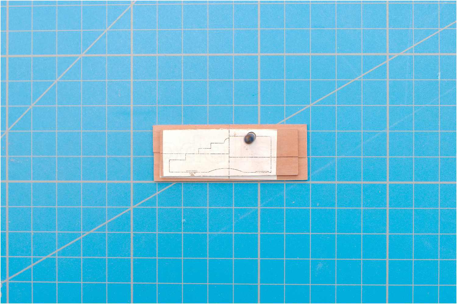 Abschließend eine Planschablone aufkleben für die Endbearbeitung, dabei immer zwei Wangen für eine Lafette bearbeiten.