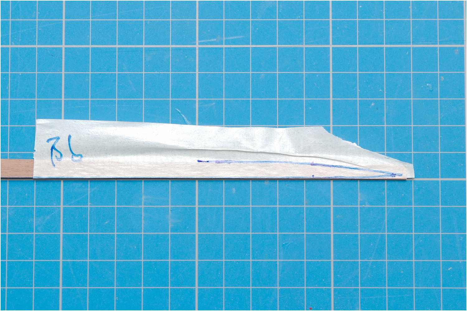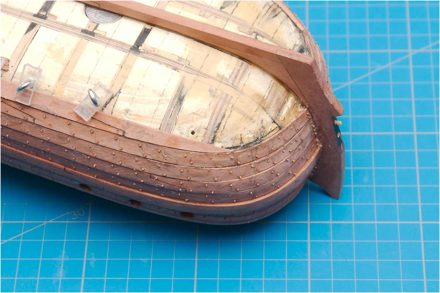 Auch die Abnahme einer dreidimensionalen Kontur wie den spitzen Plankenverlauf von Leisten, wie hier beim sog. Sandgang an der Rundung des Bugs beim Übergang vom Kiel zum Vorderstevens.