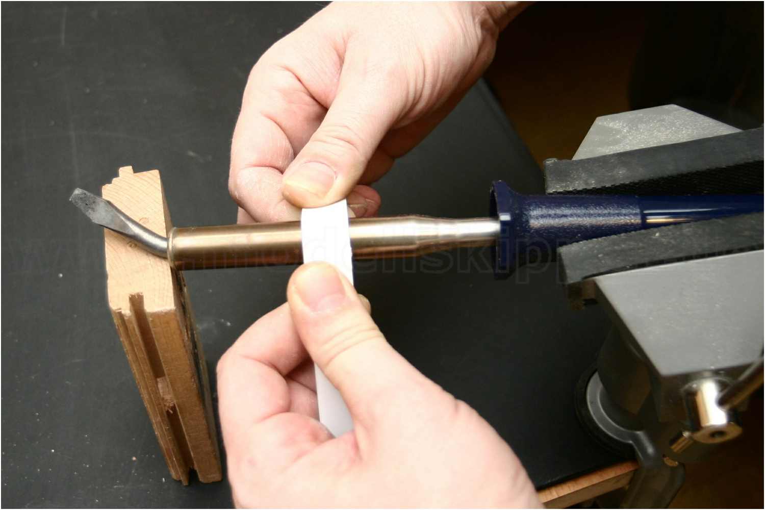 Um eine saubere und gleichmäßige Biegung zu erhalten, wurden die entsprechenden Teile vor dem Kleben auf einem kurz angewärmten Lötkolben vorgebogen. Der Lötkolben sollte sich gerade noch mit den Händen anfassen lassen. Recht hilfreich dabei ist eine Steckdosenleiste mit Schalter. So kann der Lötkolben bei der Erwärmung angefasst werden und kurz bevor es ''ungemütlich'' wird, einfach abschalten.