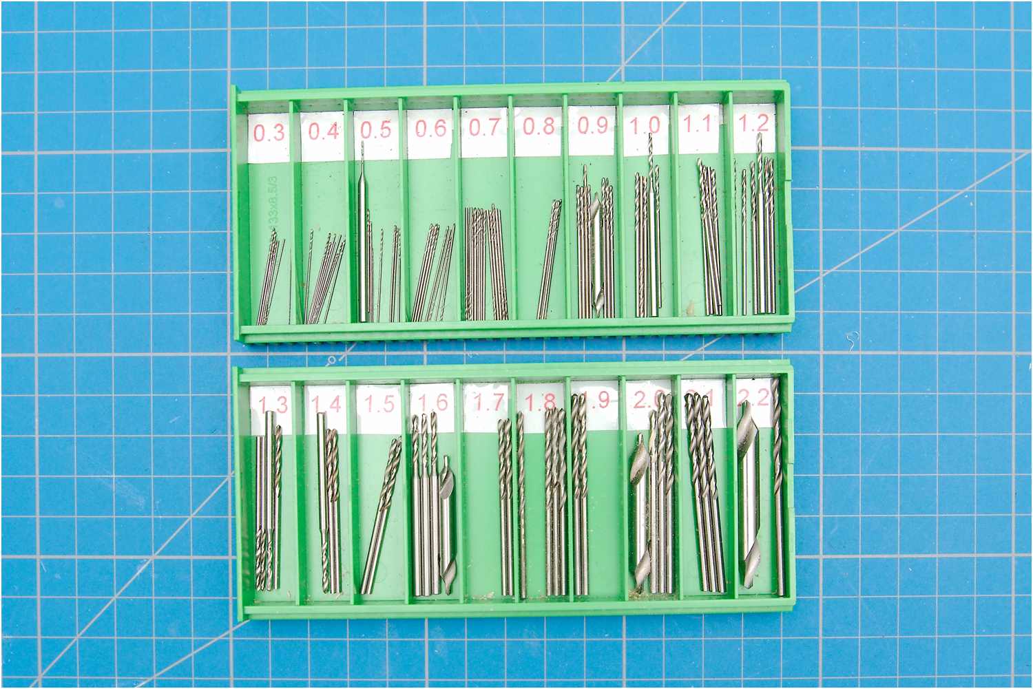 Jeweils ein Satz von Proxxon und Dremel passen gut in die Microfräse oder in die Handbohrmaschine.