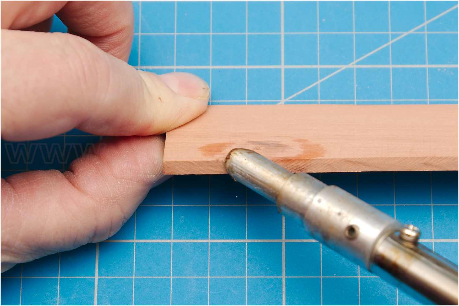 Die Hitze erwärmt das Wasser, die Holzoberfläche wird aufgeweicht und kann sich entspannen. Das Wasser verdampft durch die heiße Spitze und die Feuchtigkeit wird aus dem Holz gezogen, sodass es sofort wieder trocknet.