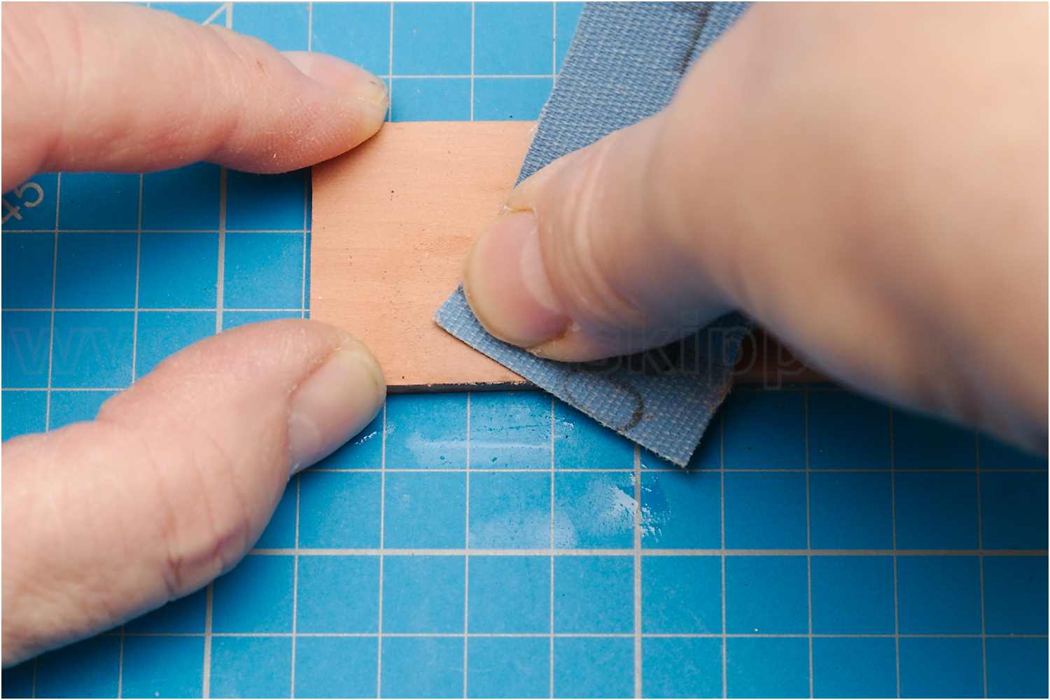Die so behandelte Stelle noch ein wenig abschleifen und die ursprüngliche Form kann so, je nach Tiefe der Quetschung, fast komplett wiederhergestellt werden.