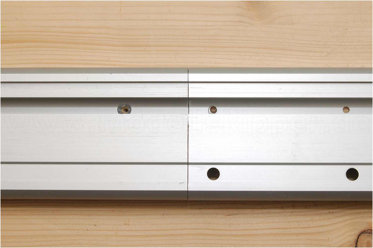 In das Ersatzbett habe ich ein 10x10 mm Kunststoffprofil in die Führung auf der Unterseite geschoben, sodass ich beide Betten fluchtend zusammenstecken kann, es funktioniert aber auch ohne.