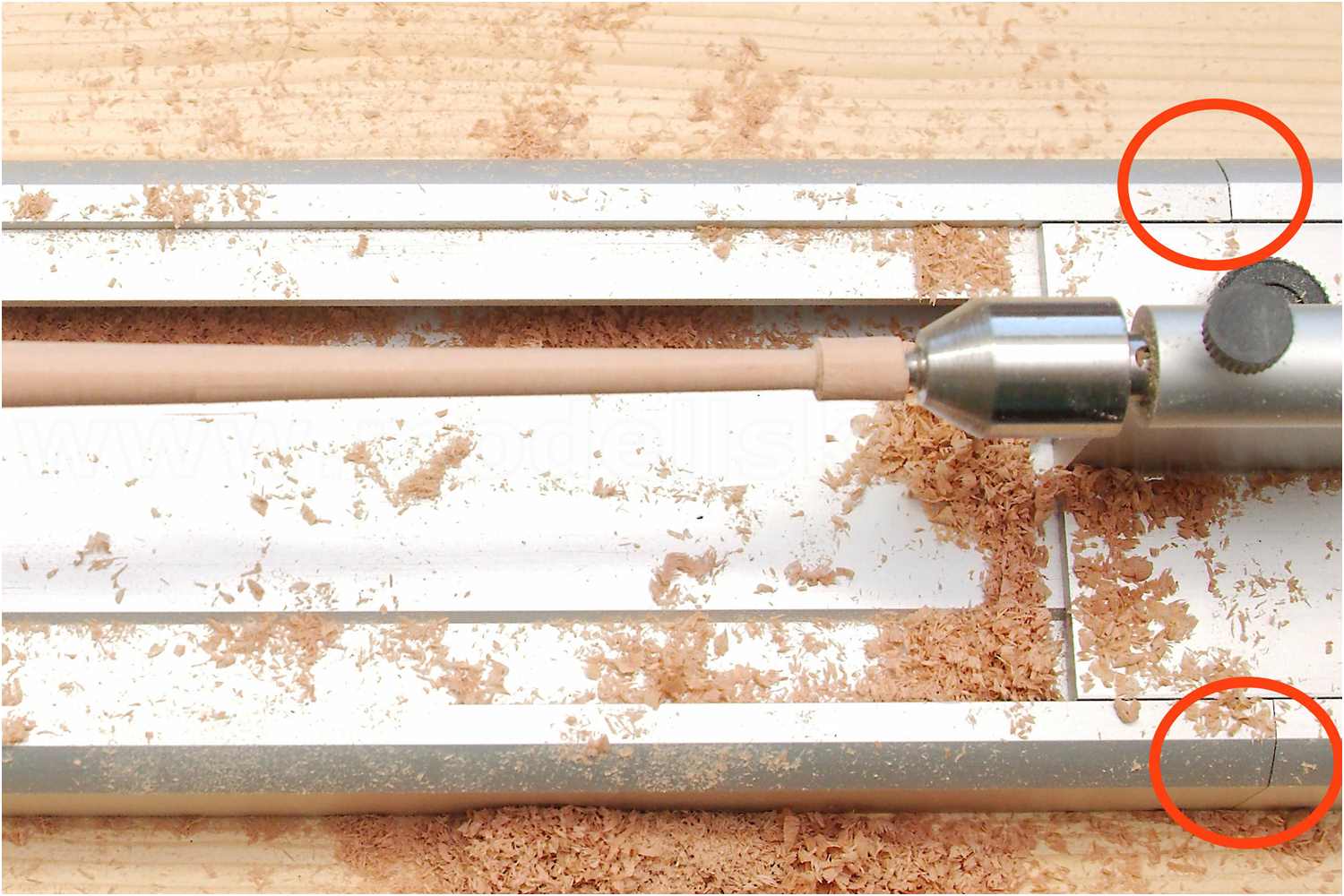 Immer wieder müssen Rundhölzer auf Maß geschliffen werden, oftmals auch noch konisch verjüngend so wie Masten und Rahen.