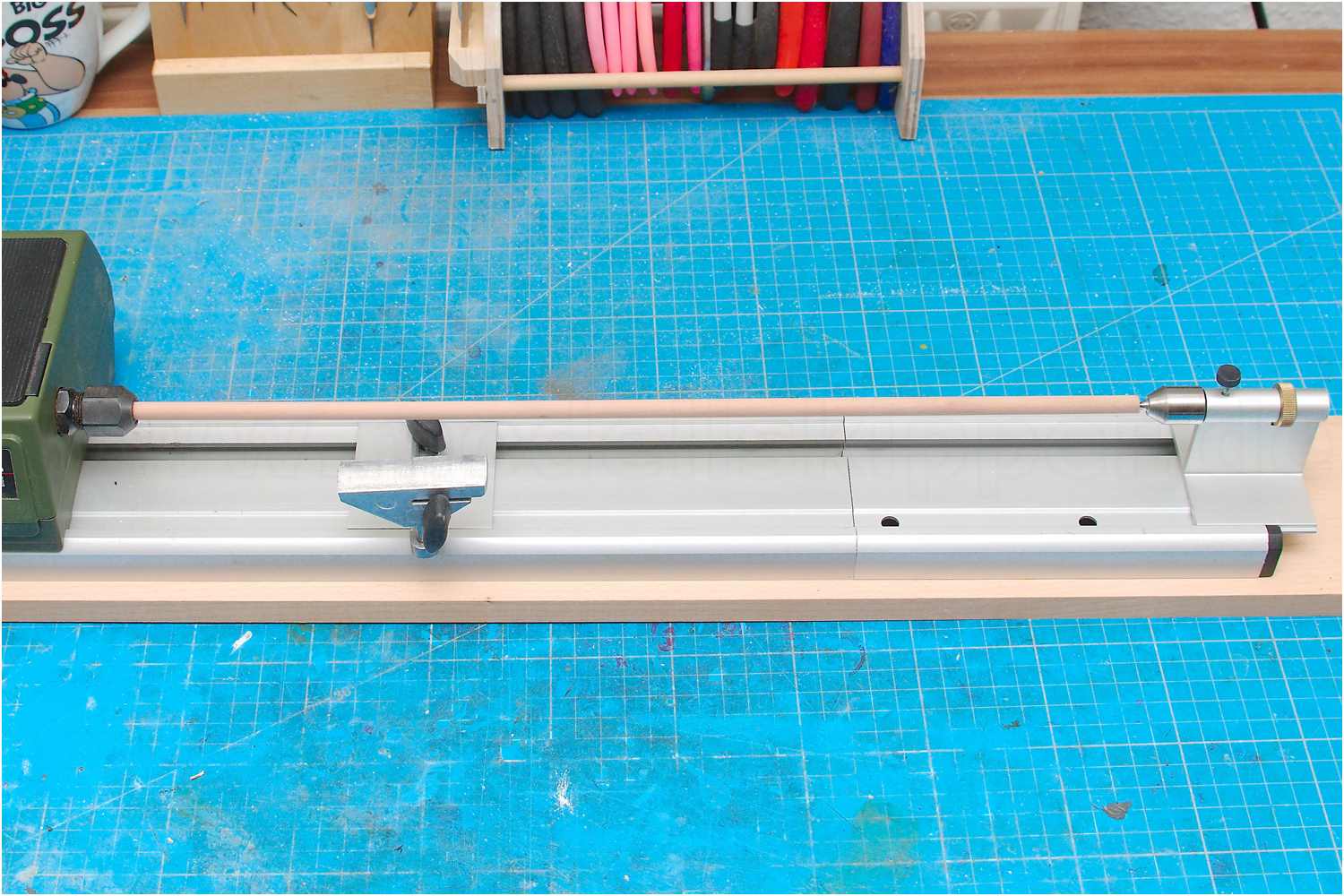 Es gibt eine recht einfache Möglichkeit des Umbaus, um auf eine Spitzenweite von bis zu 65 cm zu kommen und auch mal längere Spieren bearbeiten zu können.