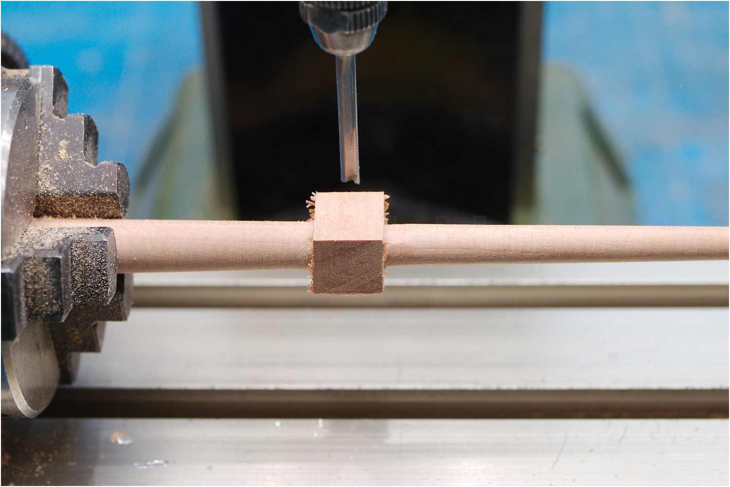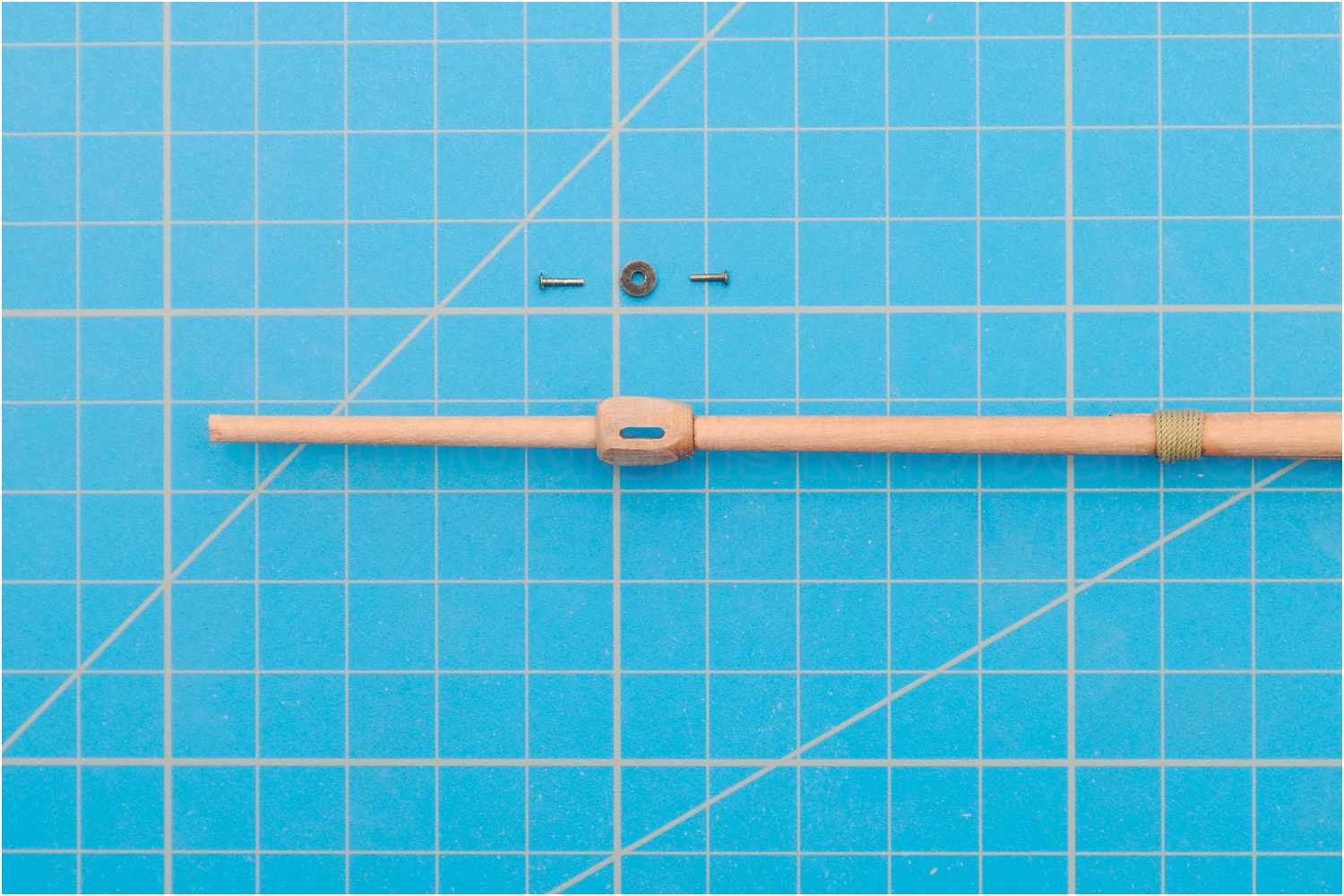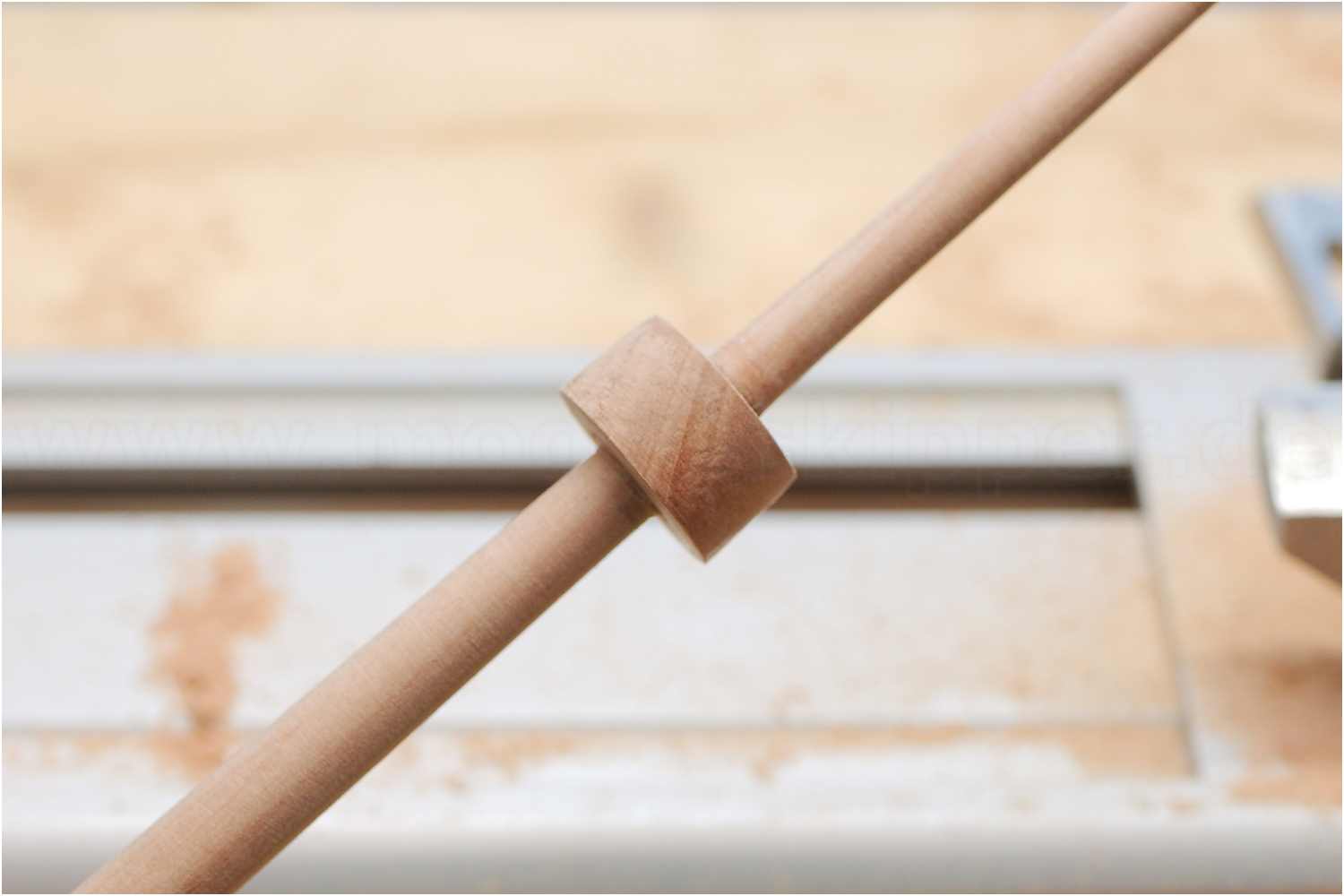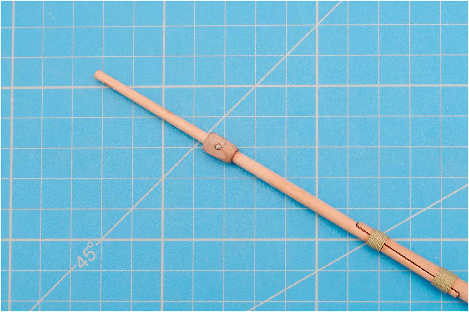 Soll eine Mast eine Verdickung erhalten und man hat kein entsprechend dickes Rundmaterial, wird die Spiere erst normal gedrechsel und dann nachträglich eine separates Stück aufgesetzt, dass aus einem Brettchen geschnitten wurde.