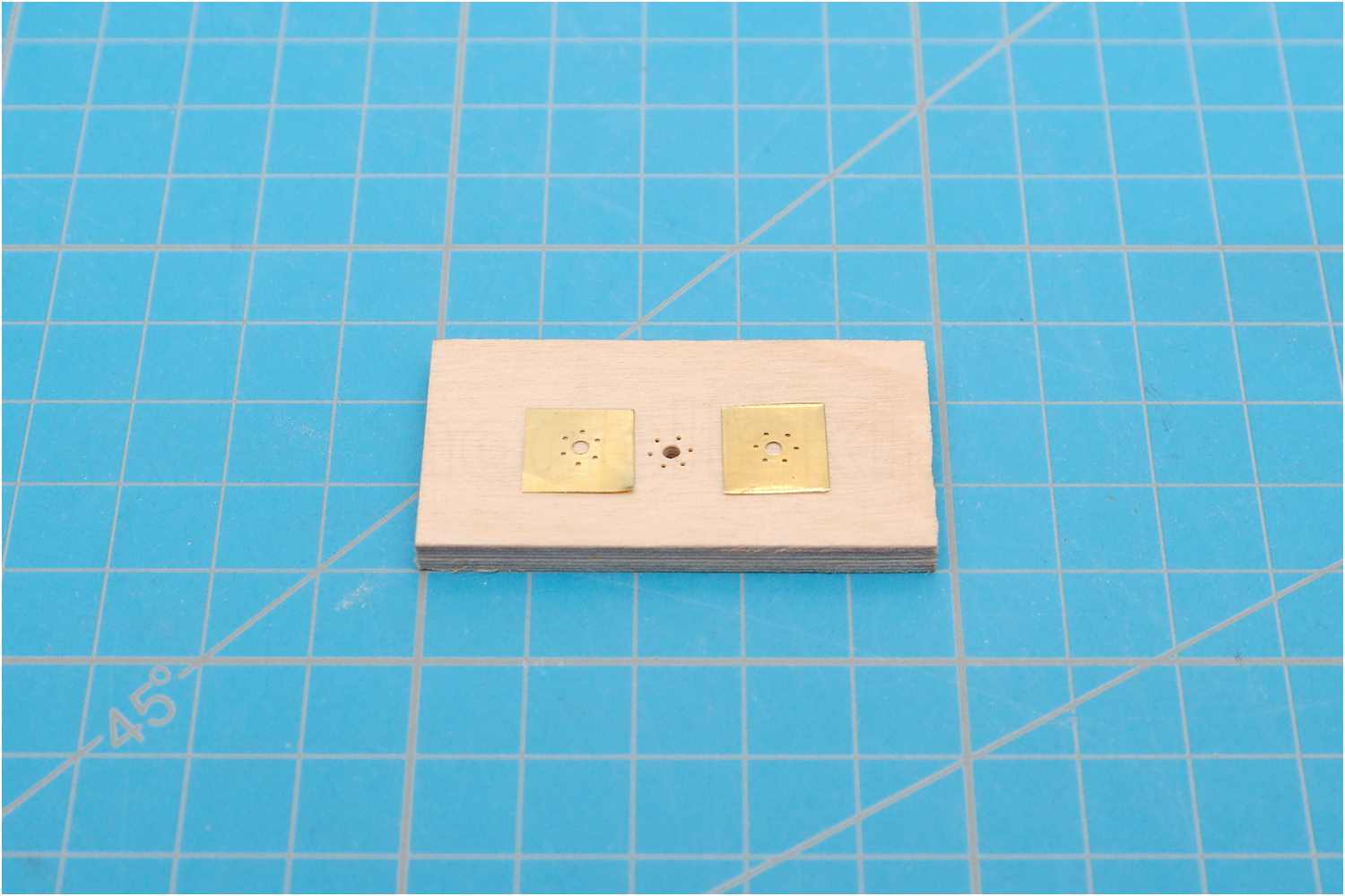Dünnes Messingblech kann auch zwischen zwei Sperrholzplättchen gelegt werden, wenn z.B. nach dem Bohren noch die Kanten gefräst werden müssen, um die Bearbeitung verzugsfrei auszuführen, wie in diesem Fall für die Anfertigung eines filigranen halbrunden Ringbeschlags.