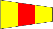 Buchstabe: Y Proportion: 1:1 internationaler Code: yankee deutscher Code: üpsilon Bedeutung: Treibe vor Anker bei Regatten: Schwimmwesten anlegen |