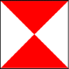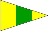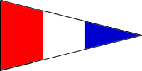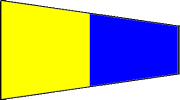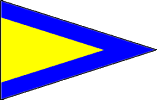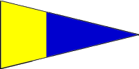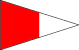 Buchstabe: A Proportion: 1:1,5 internationaler Code: alpha deutscher Code: anton Bedeutung: Taucher unten/Abstand halten bei Regatten: Wettfahrtverschiebung |