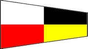 Buchstabe: N Proportion: 1:1 internationaler Code: november deutscher Code: nordpol Bedeutung: Nein bei Regatten: Abbruch der Wettfahrt zurück zum Start |